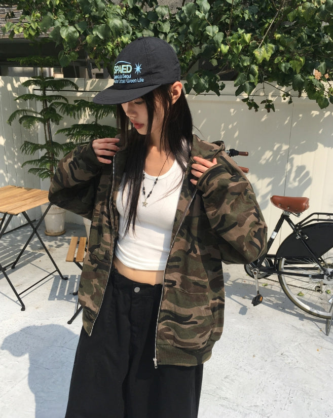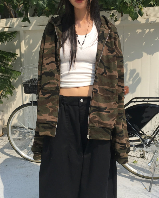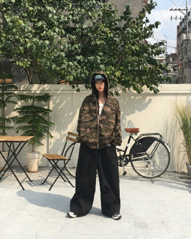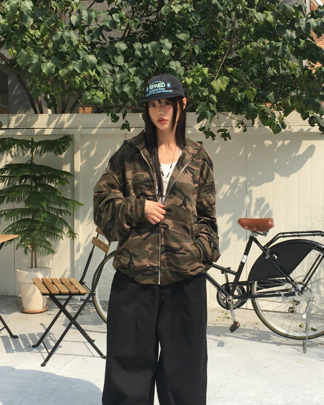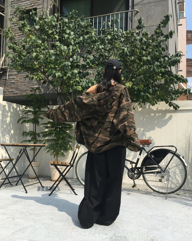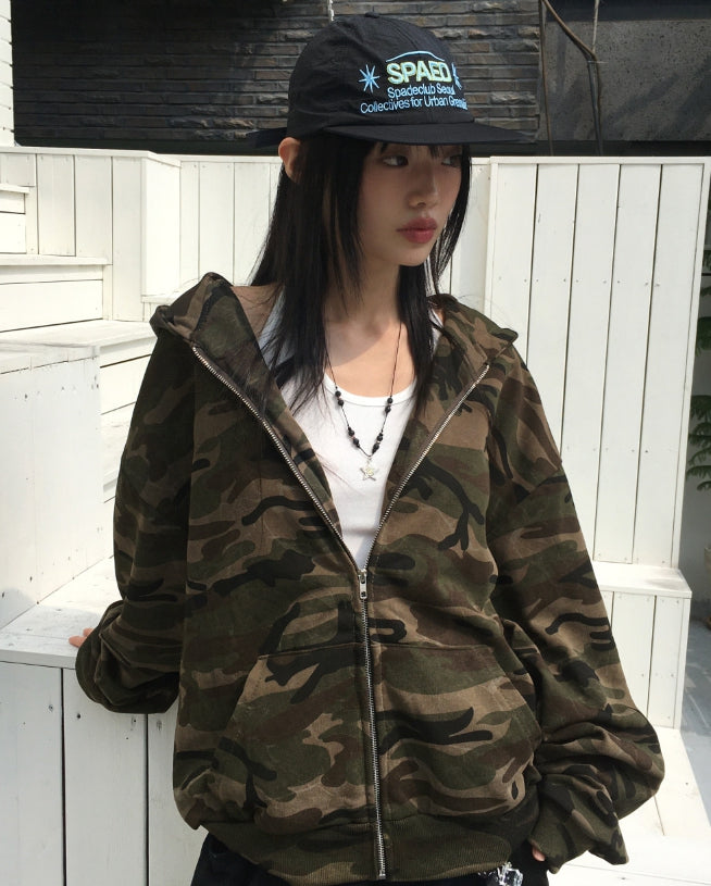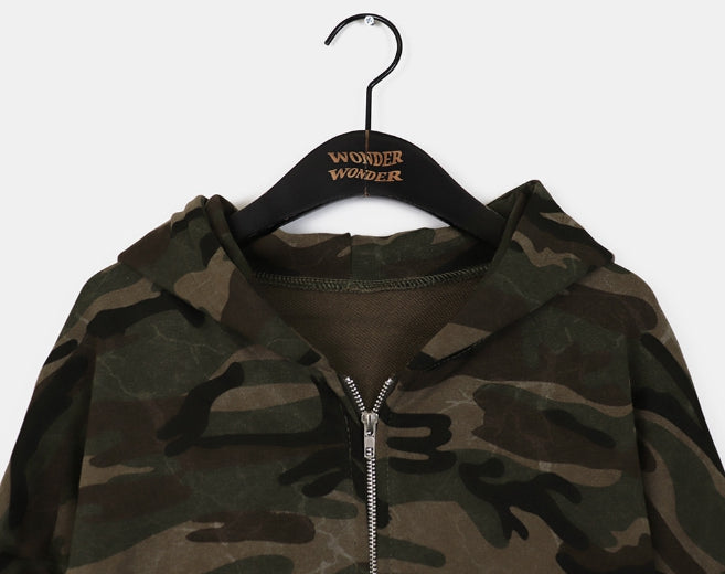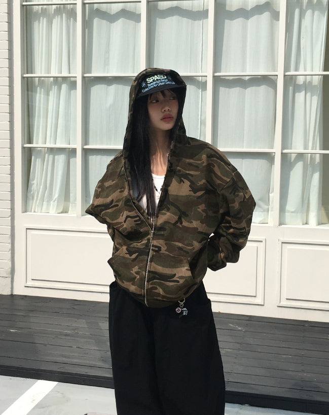 Chebo Military Camo Oversized-Fit Hood Zip-Up