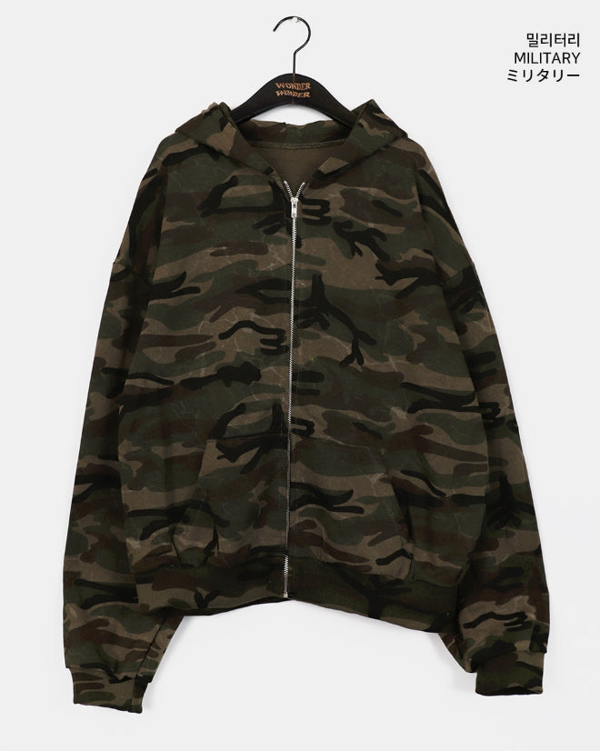 チェボミリタリーカモオーバーフィットフードジップアップ