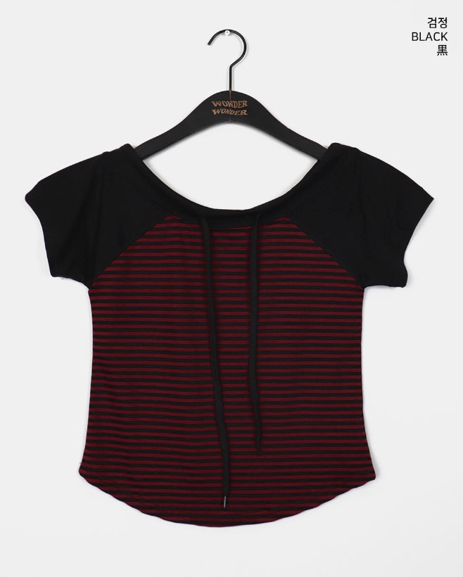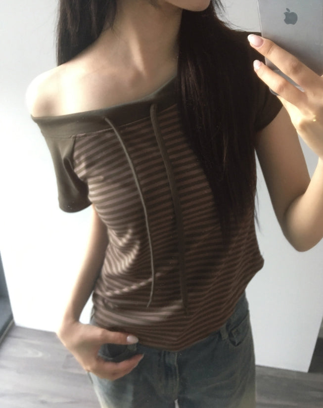 Chenle Stripe Off-Shoulder Short Sleeve T-Shirt