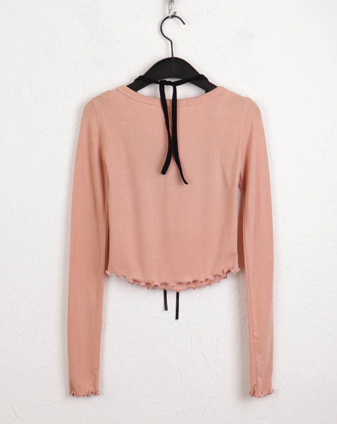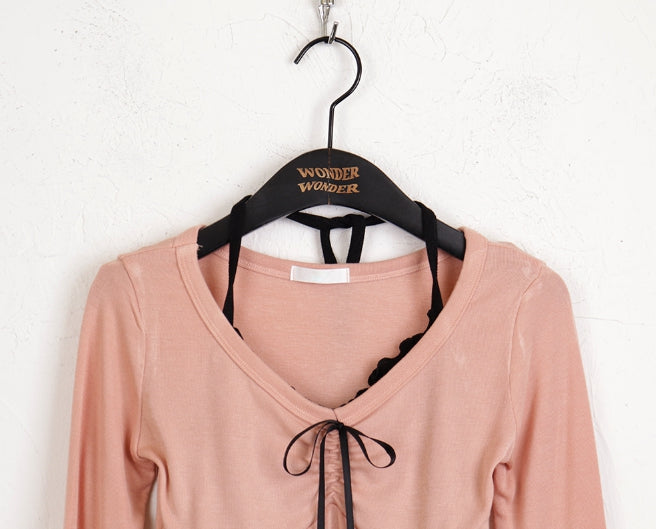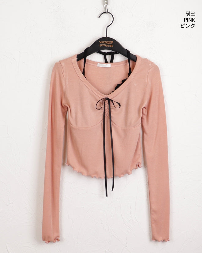 チリングバレエコアシャーリングリボンウェーブノースリーブオールインワン長袖Tシャツ