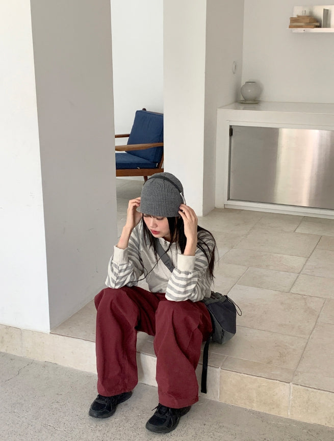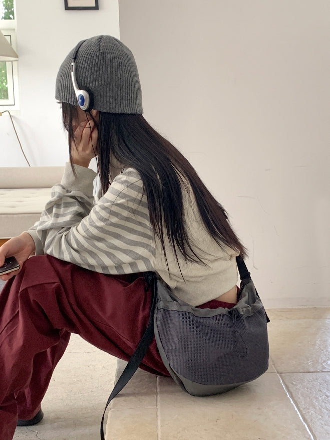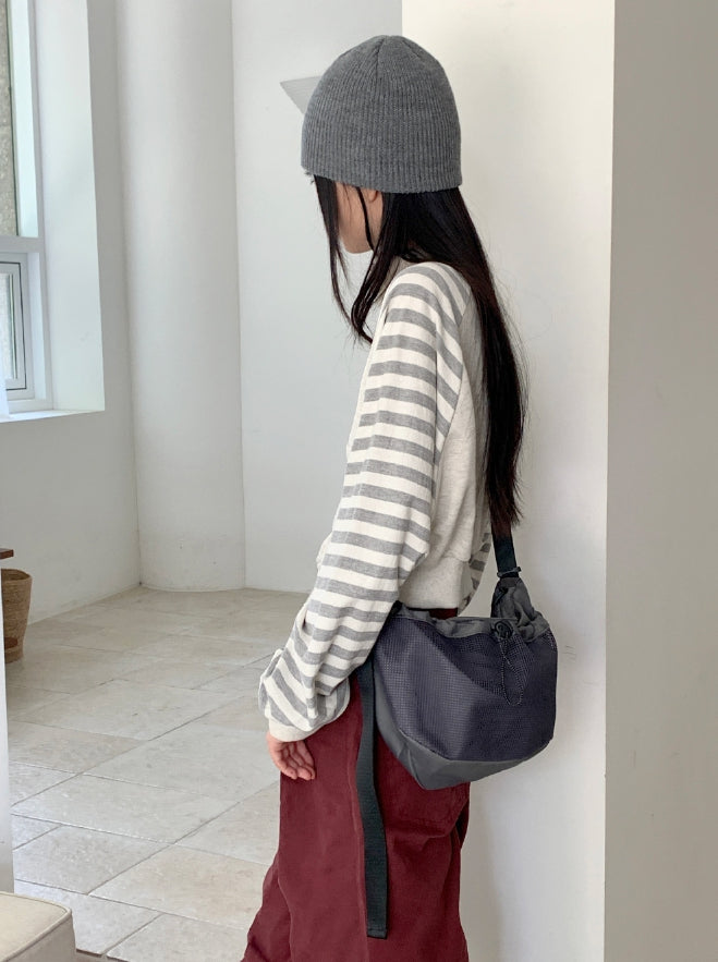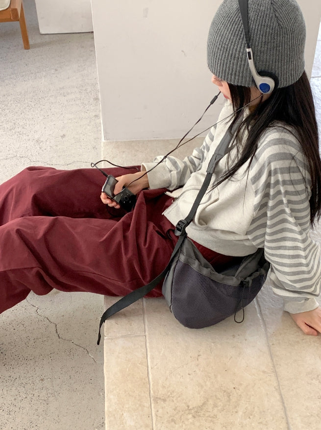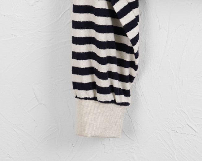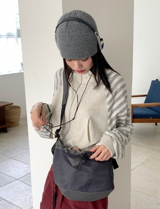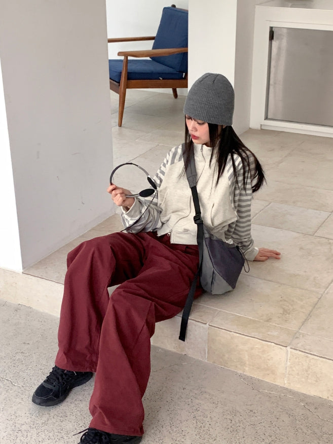 Choit Stripe Color Matching Half Neck Two-Way Pile Crop Zip-Up