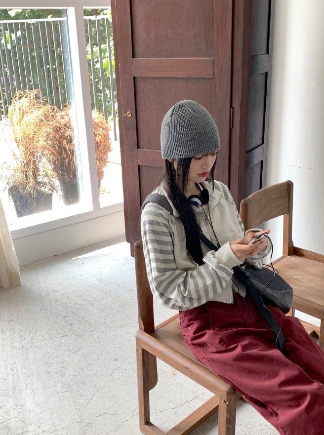 チョイトストライプカラーハーフネックツーウェイパイル生地クロップジップアップ