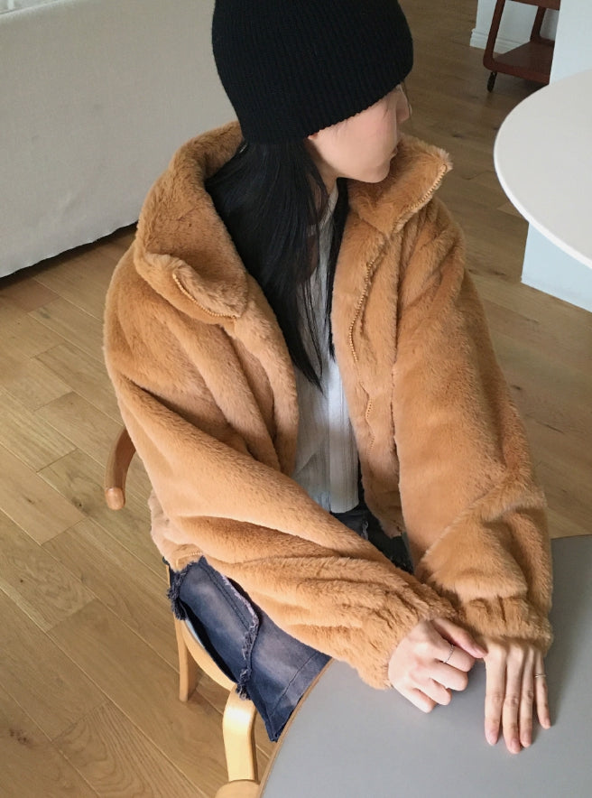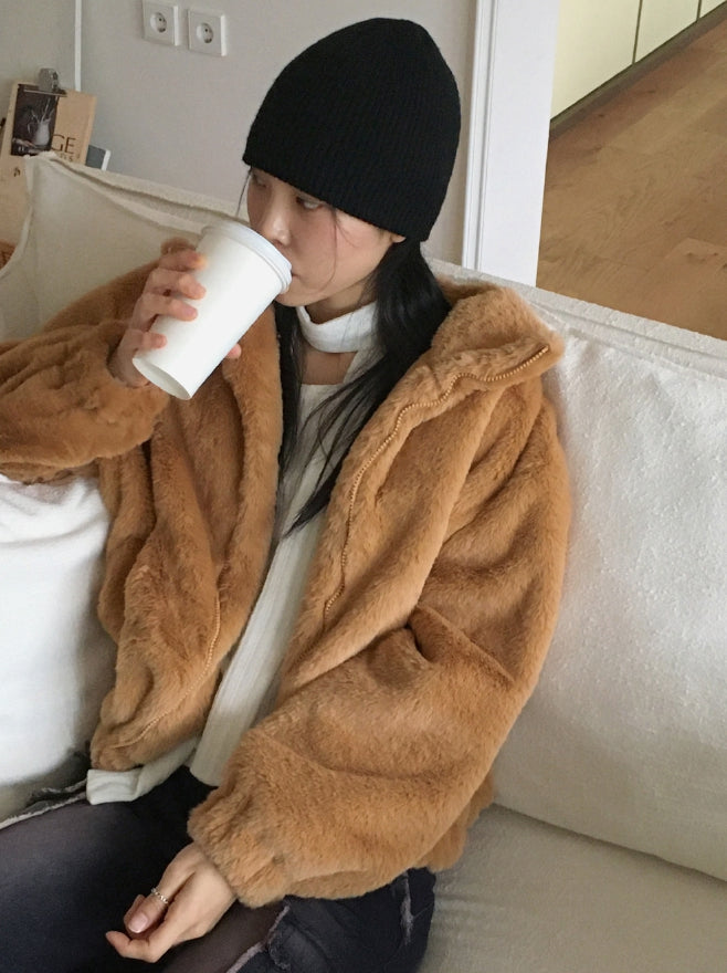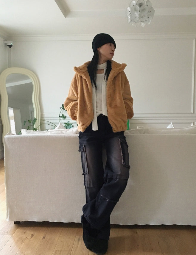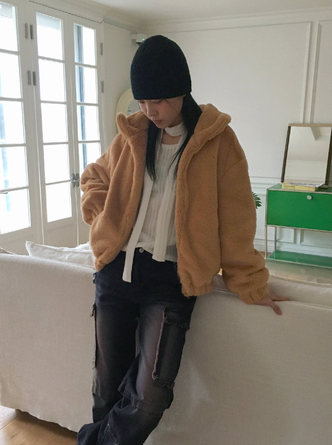 Chopin Collar Fur Cropped Zip-Up Jumper