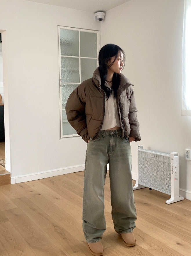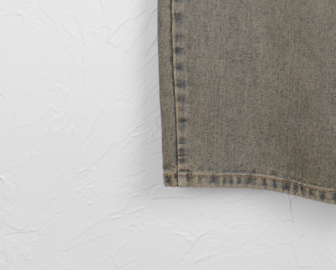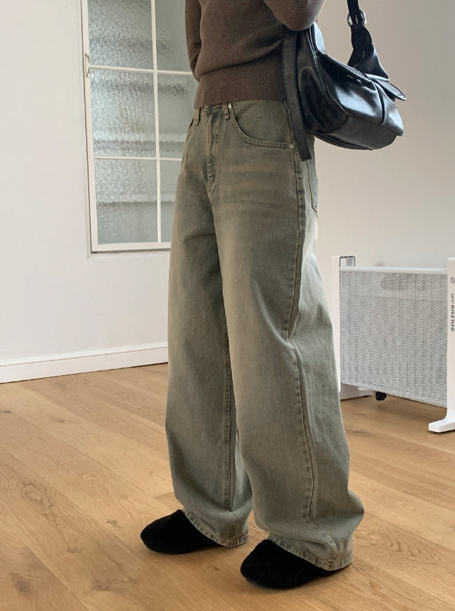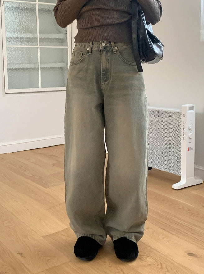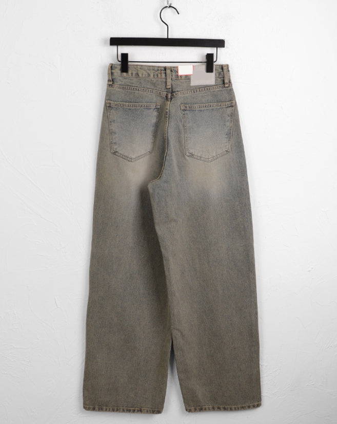 クッチグレーッシュウォッシングロングワイドデニムパンツ