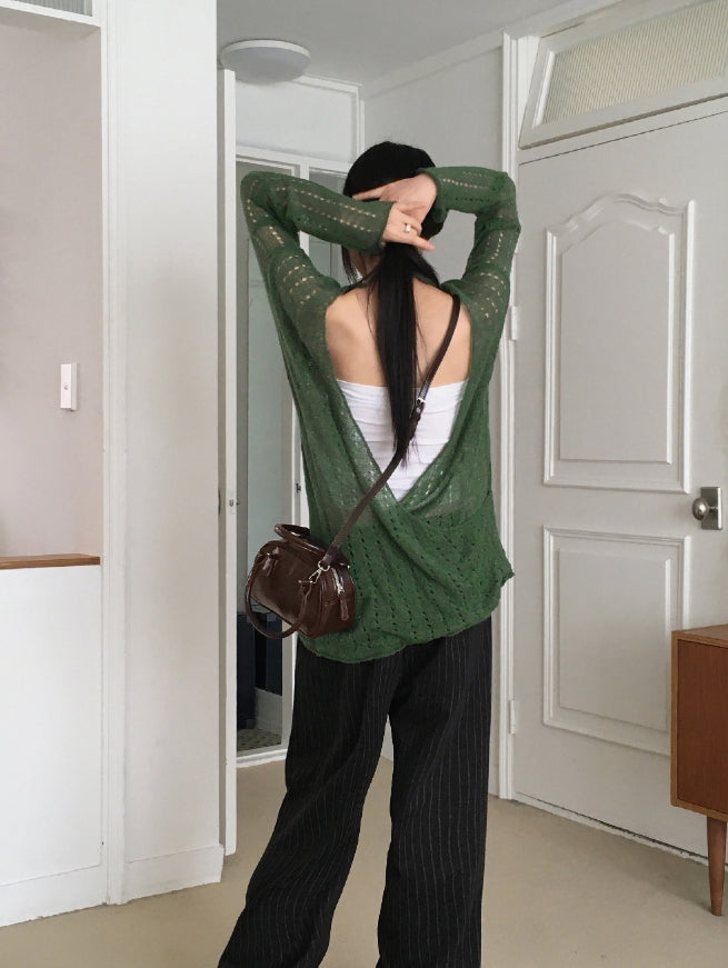 Concle Back Silt Strap Wrap Punching Layered Long Sleeve Knit