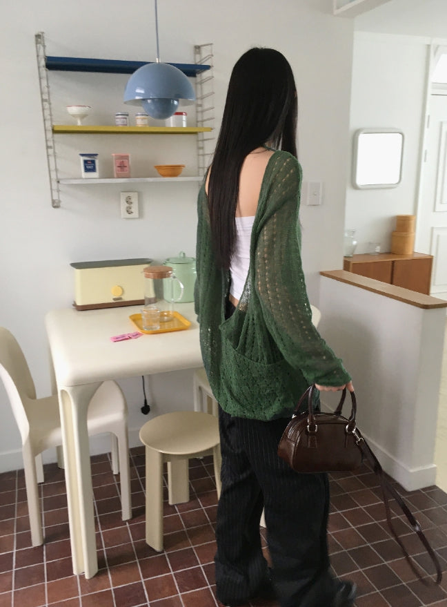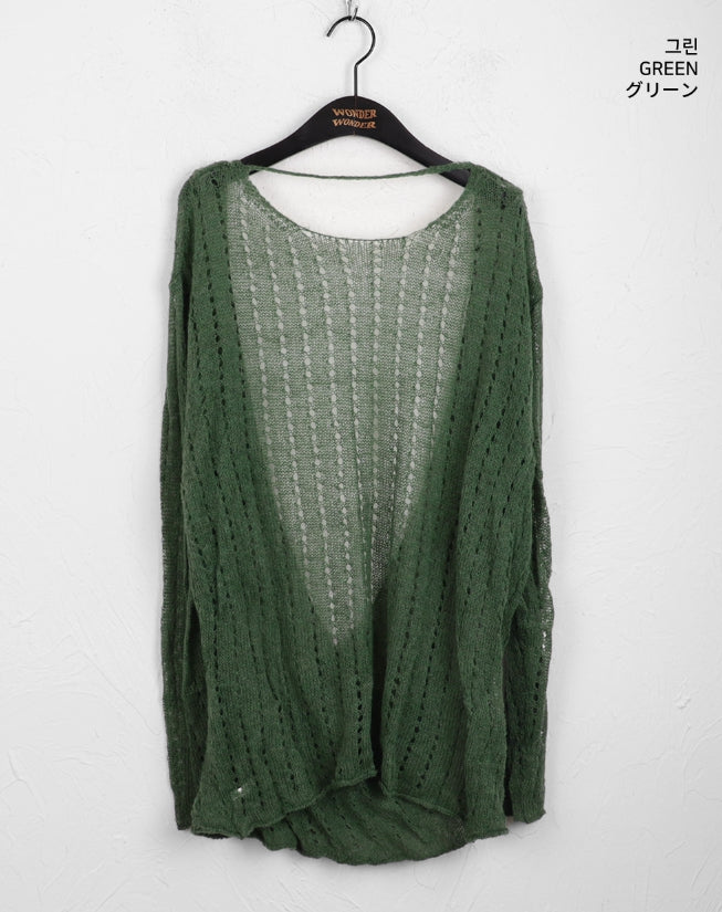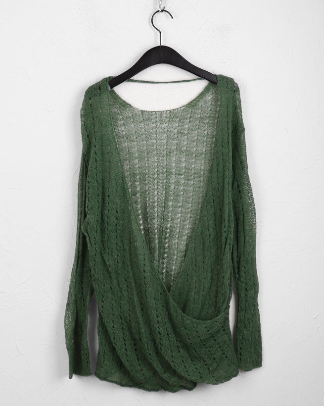 Conclude Back Slit Wrap Punching Layered Long-Sleeved Knit