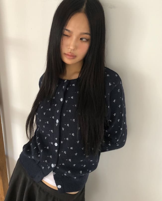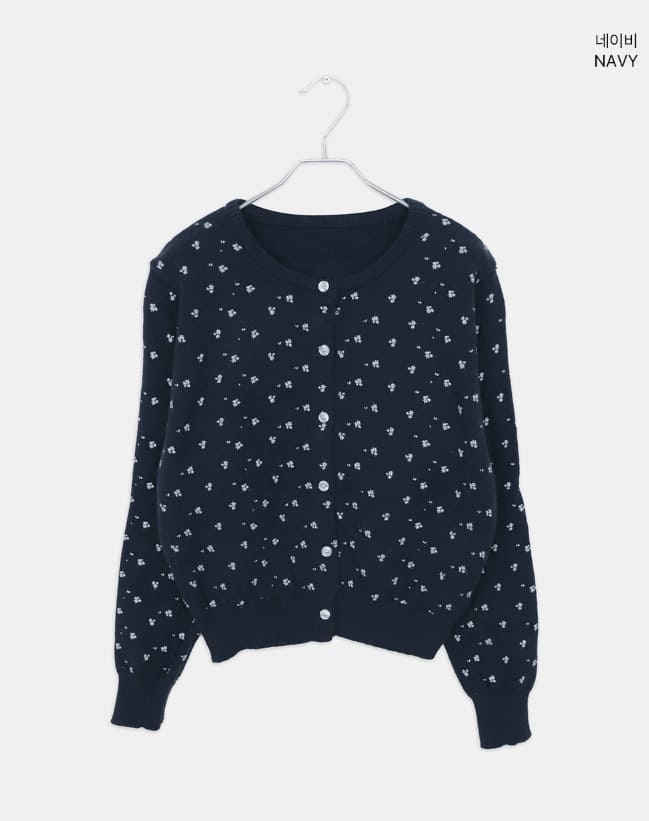 ダリングフラワーラウンドネック長袖ニットカーディガン