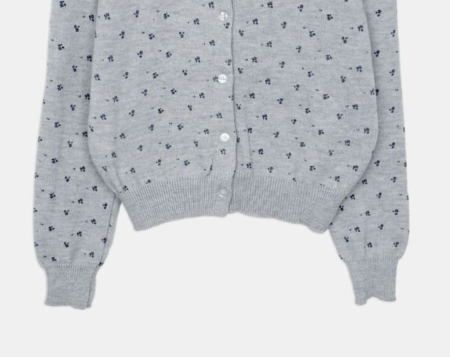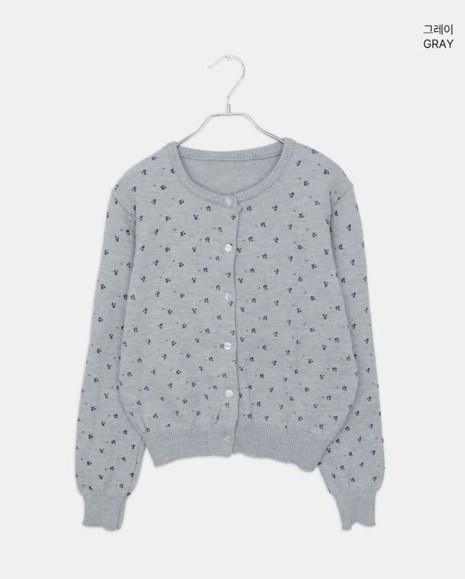 ザリングフラワーラウンドネック長袖ニットカーディガン