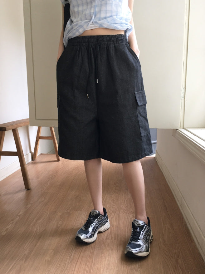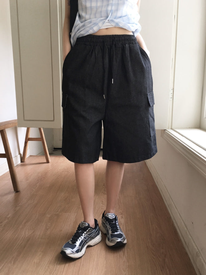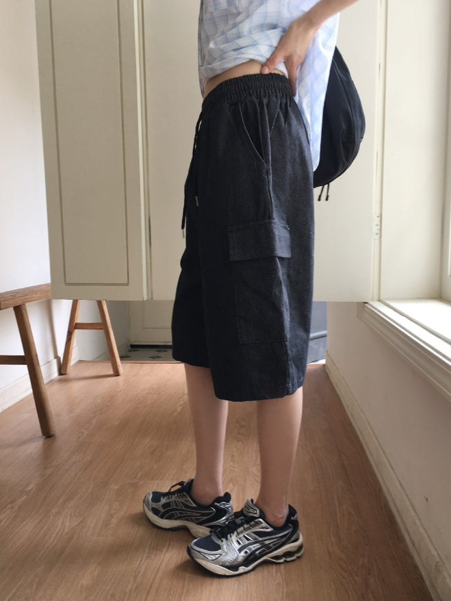 Dinsey Bermuda Half-Length Cargo Denim Pants