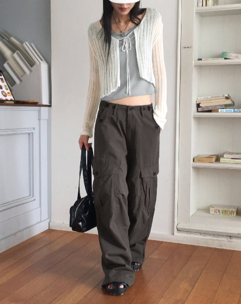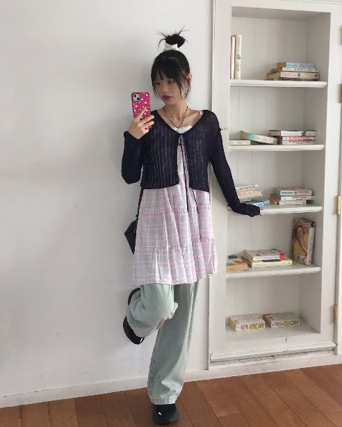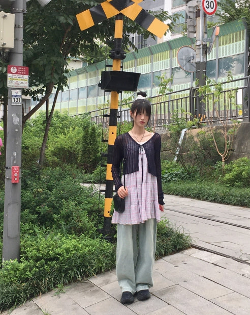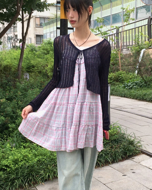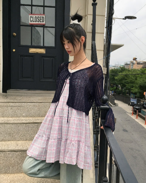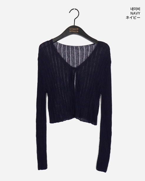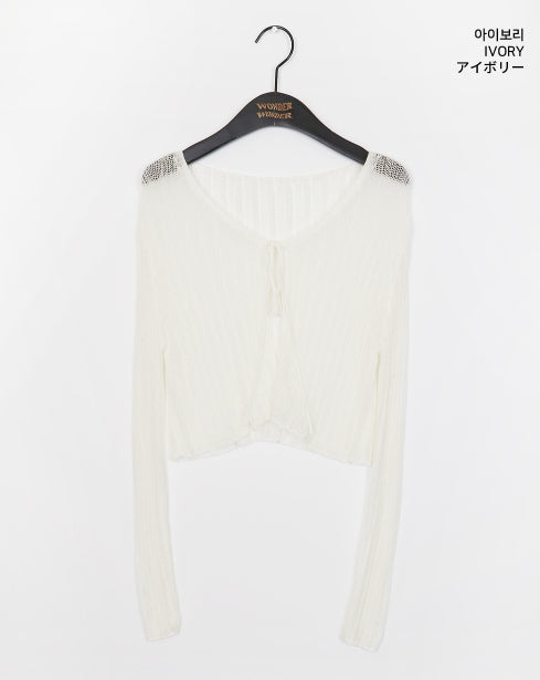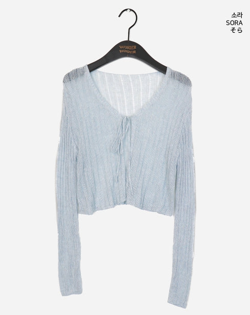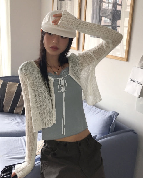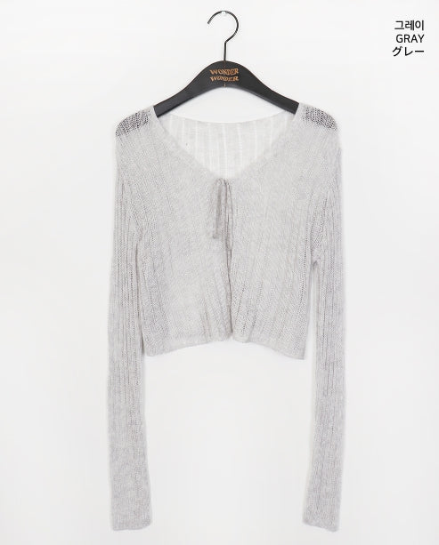 ドッペシースルーリブクロップ紐ボレロカーディガン