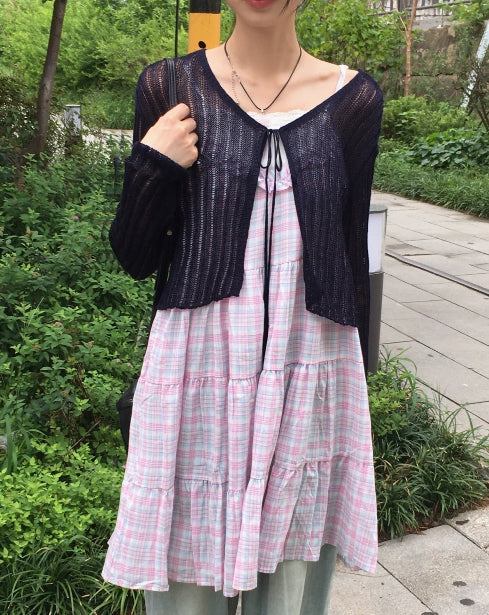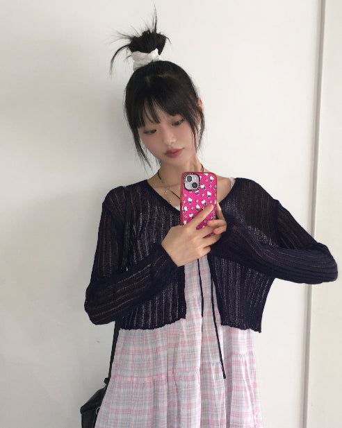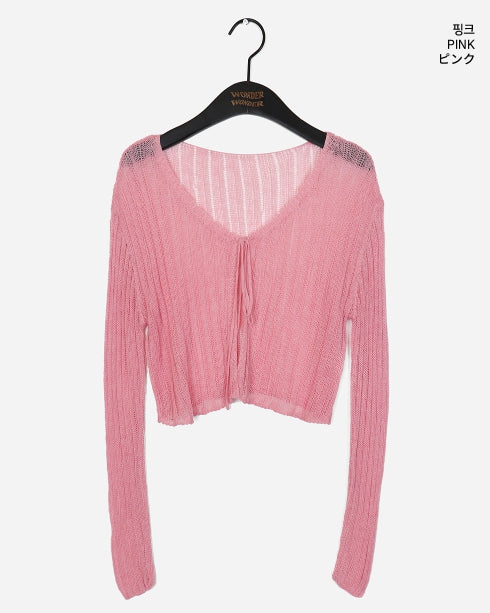 Dope see-through V-neck Cropped String Bolero Cardigan