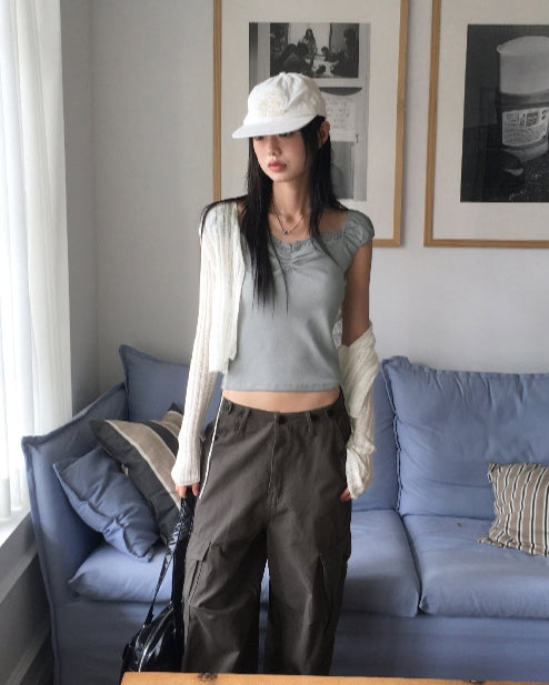 ドープシースルーリブクロップストラップボレロカーディガン