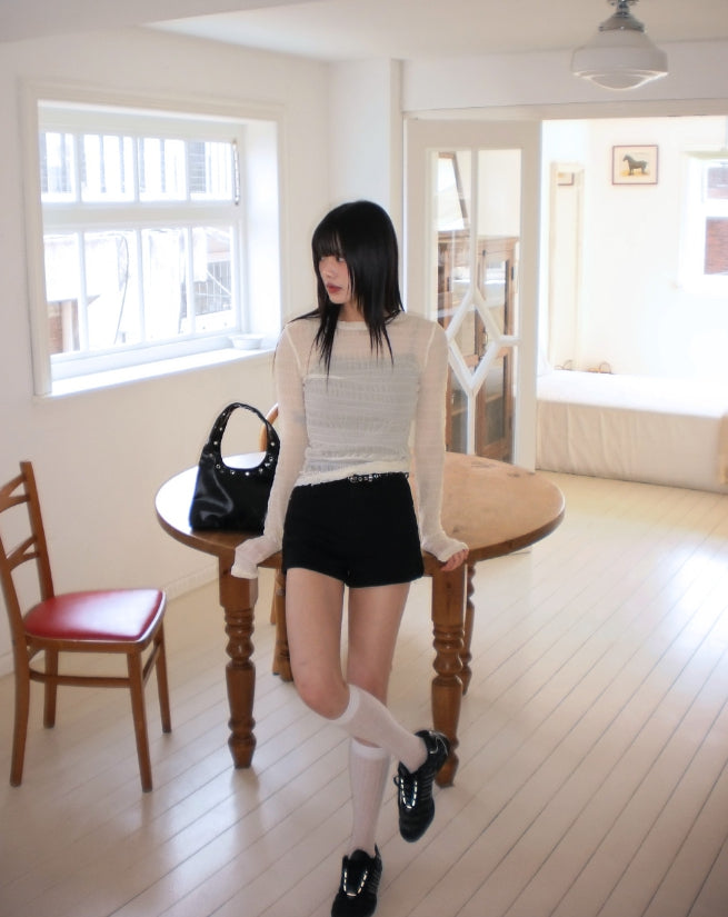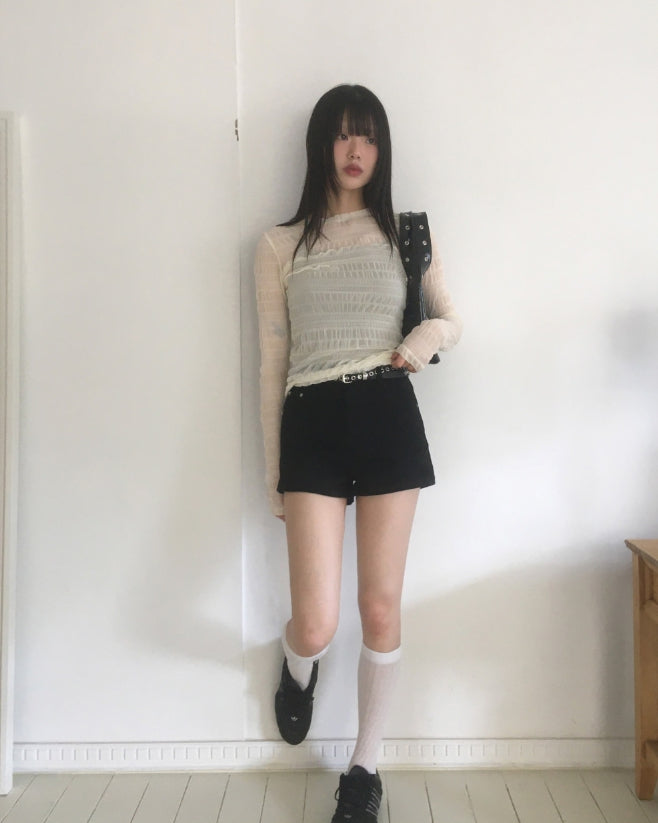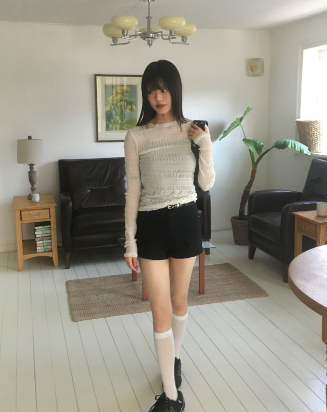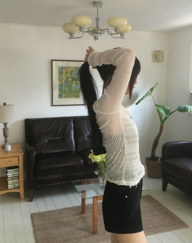 Doten Pleats Shirring See-through T-shirt