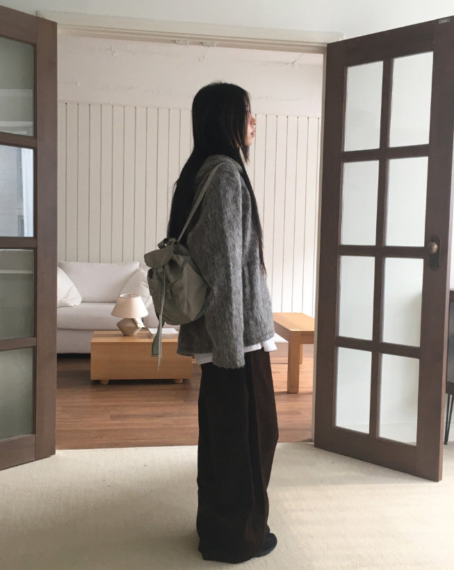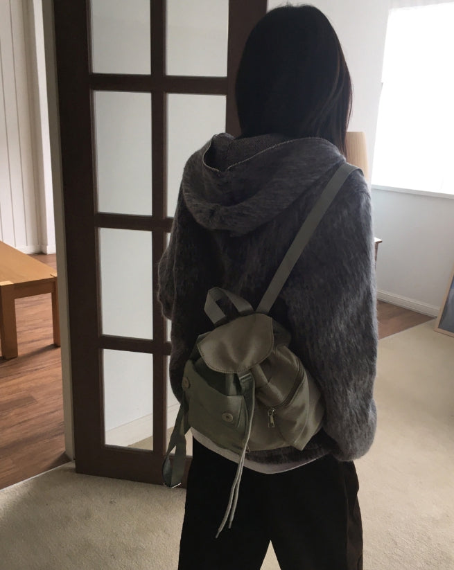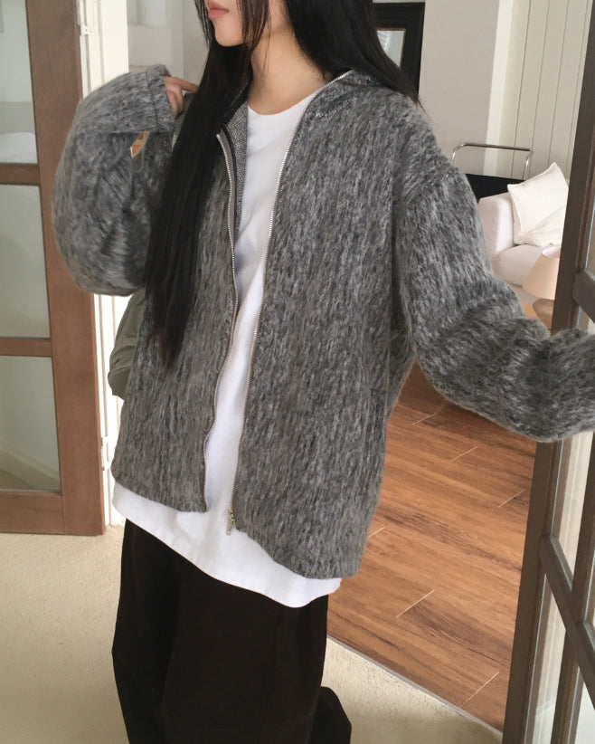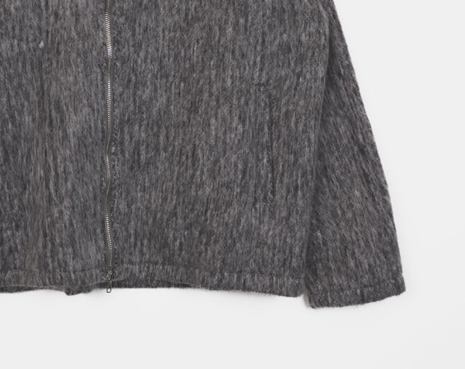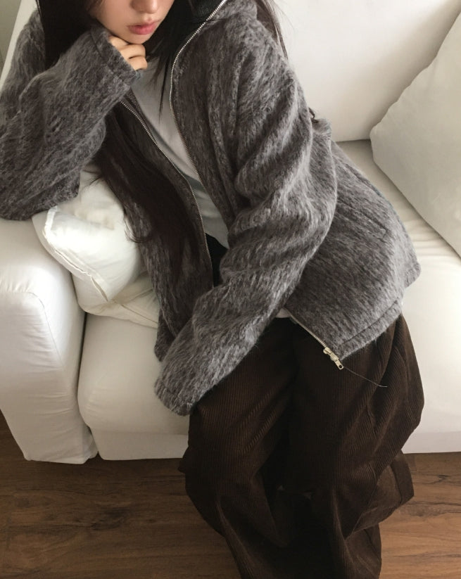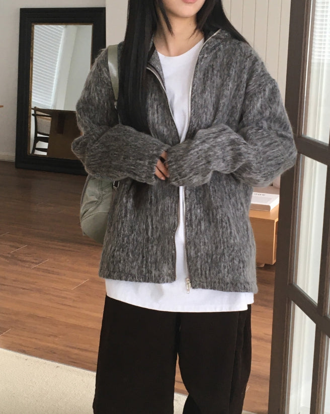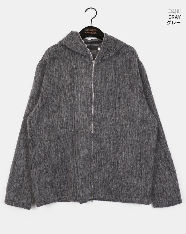 Dubo Mohair Fur Brush Zipper Hooded Zip-Up