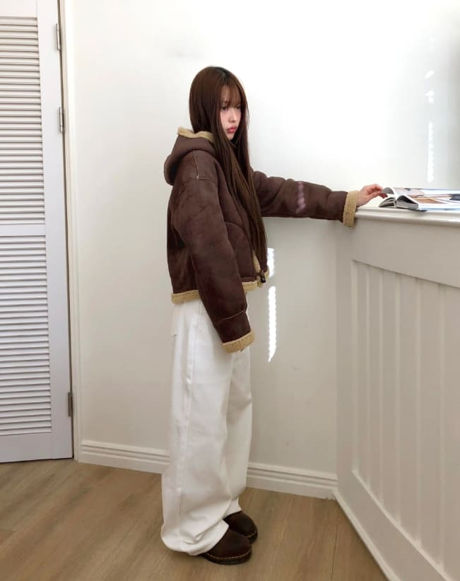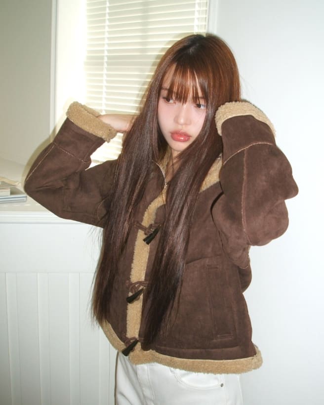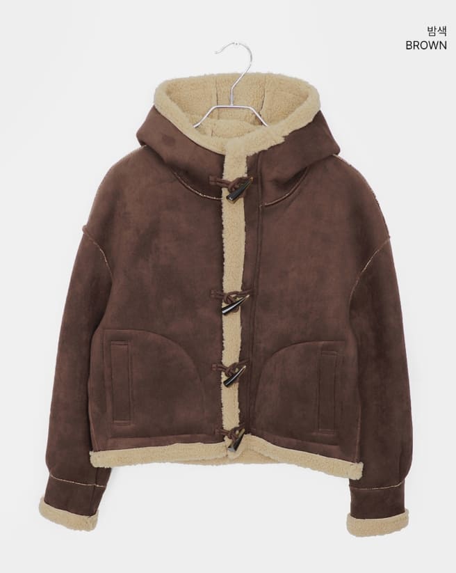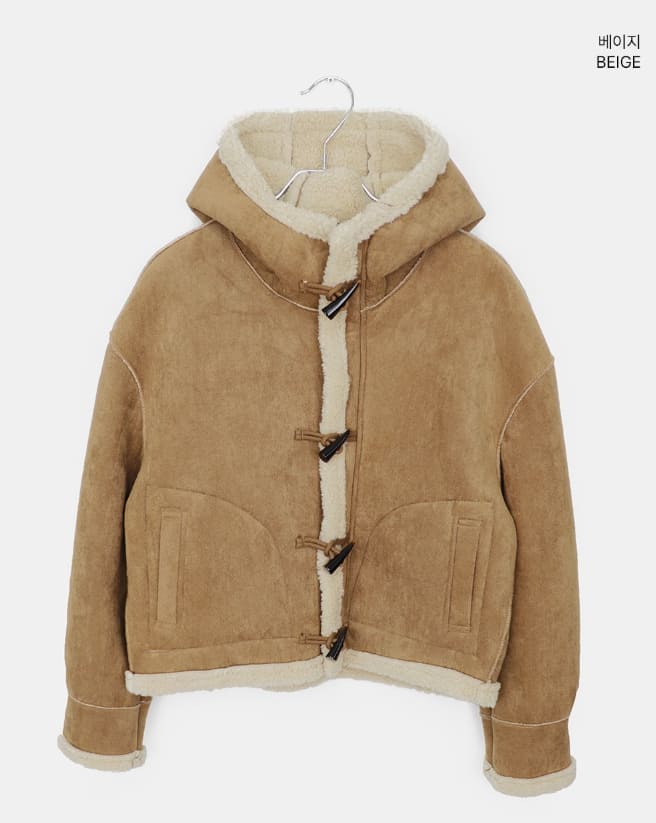 Duna Suede Hooded Tteokbokki Fleece Fur Mustang Jacket