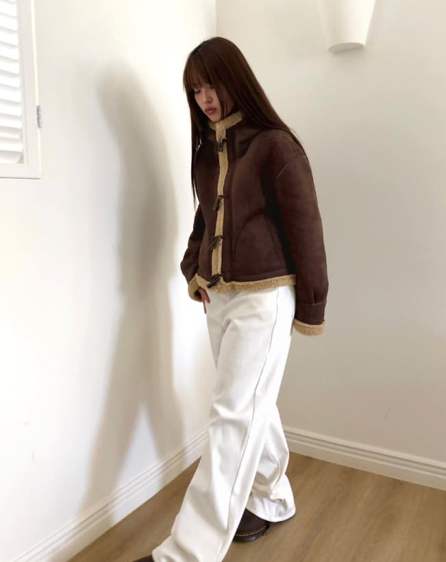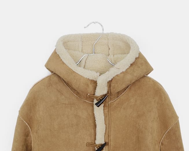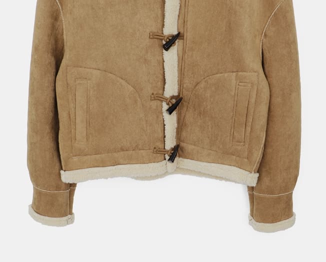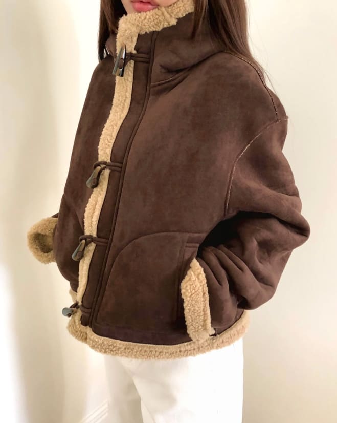デュナスエードフードダッフルフリースムートンジャケット