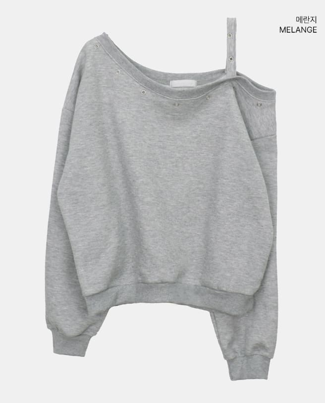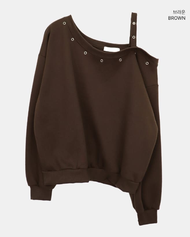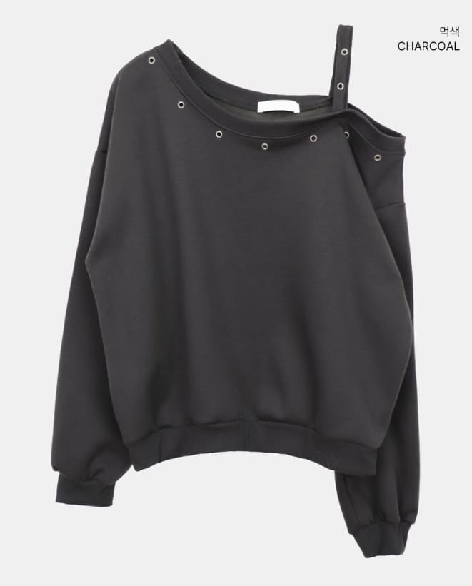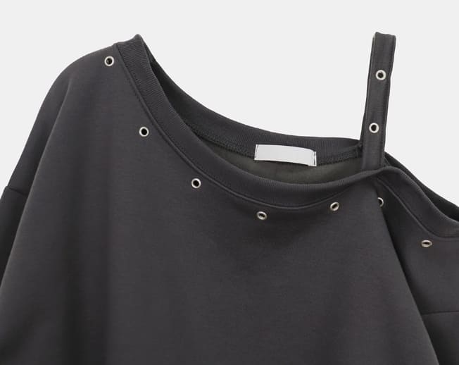 Duon Eyelet Strap Off-Shoulder Fleece Man-to-Man