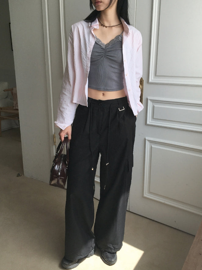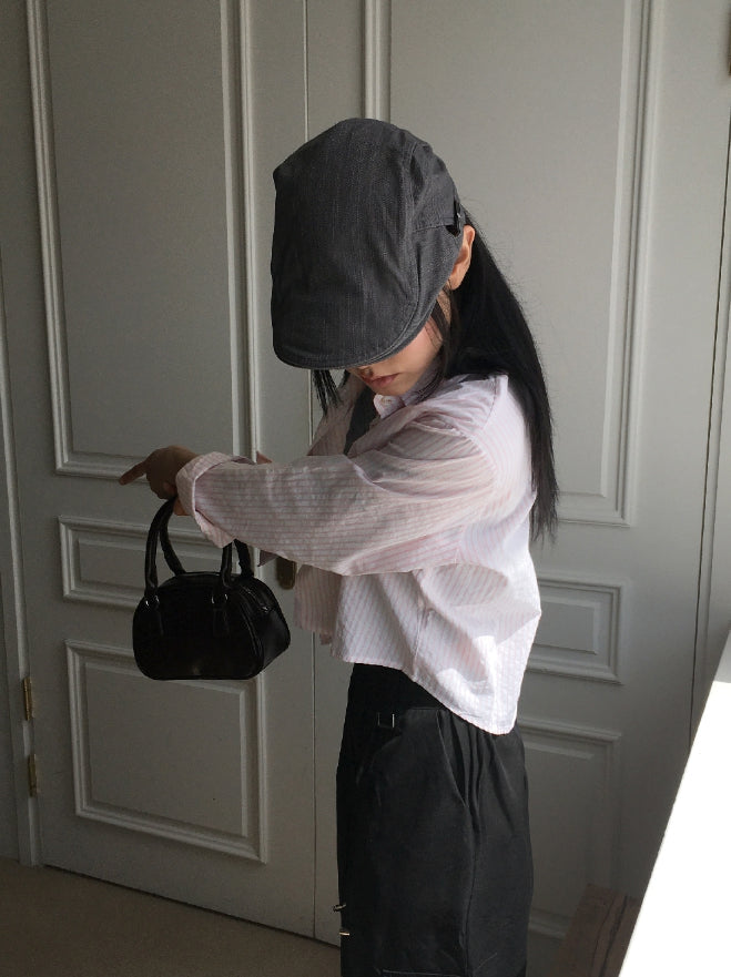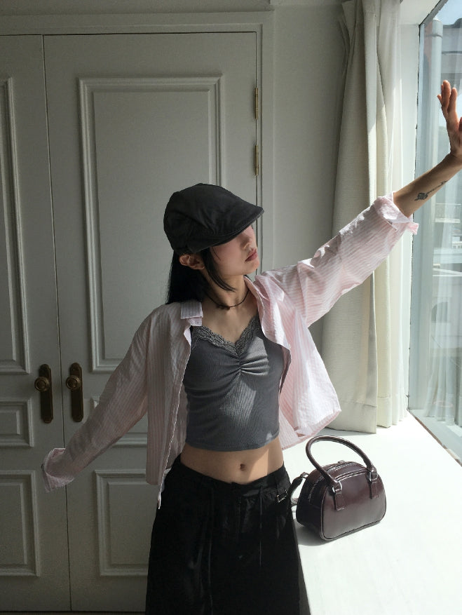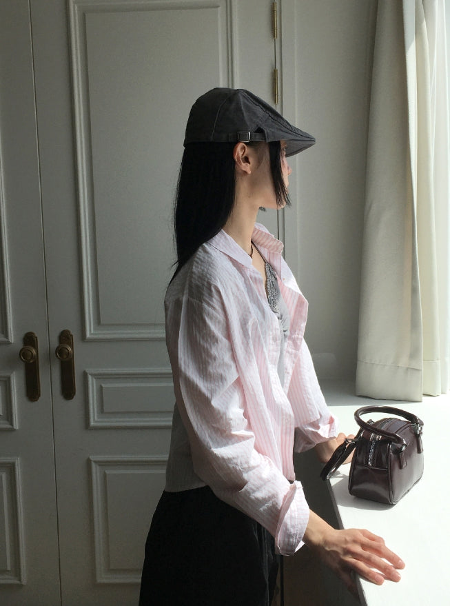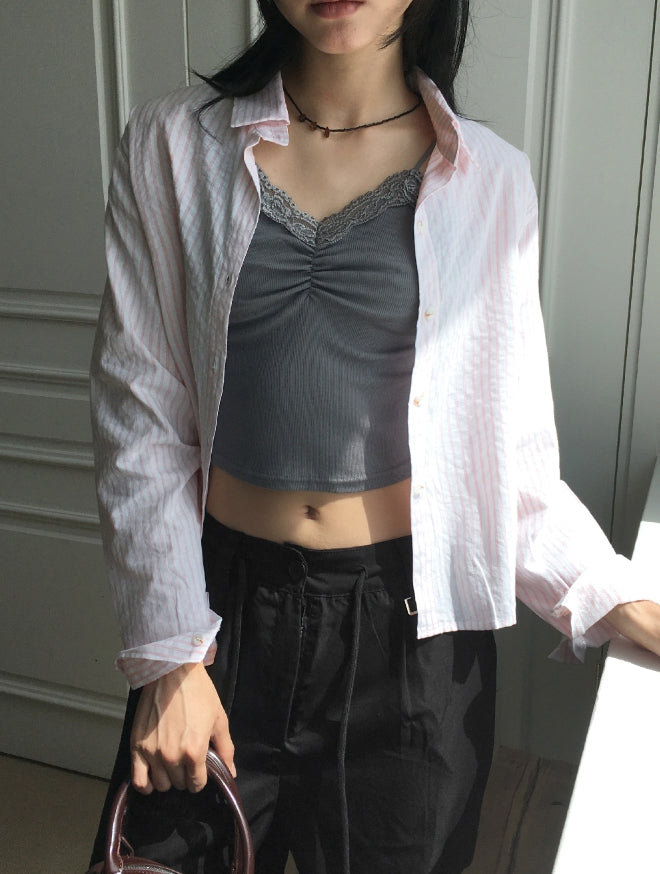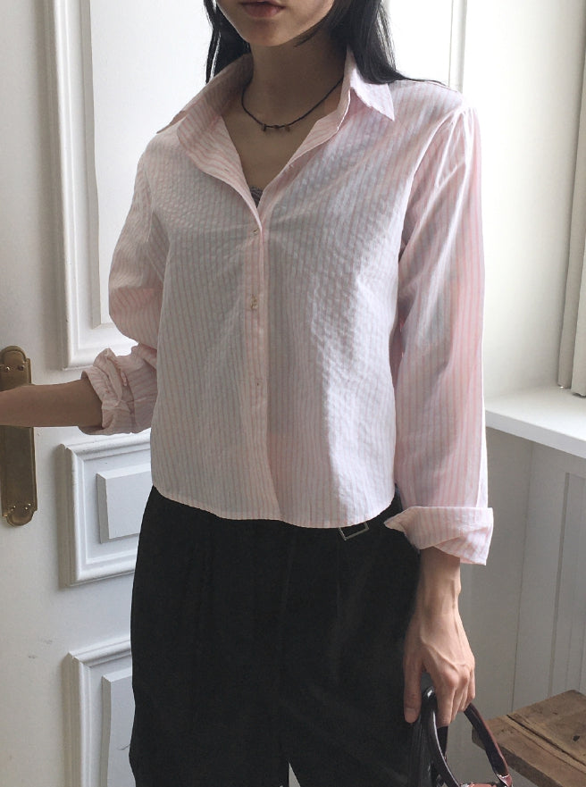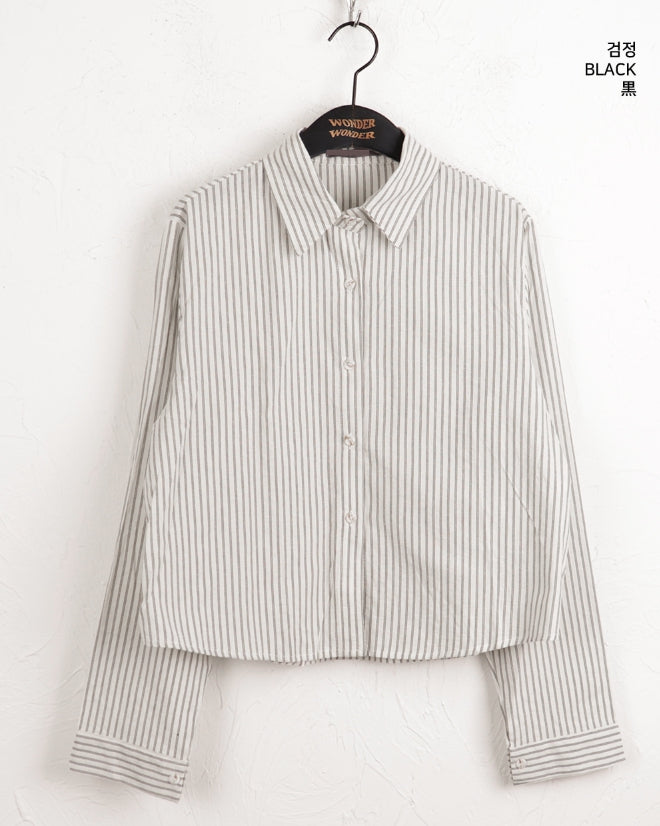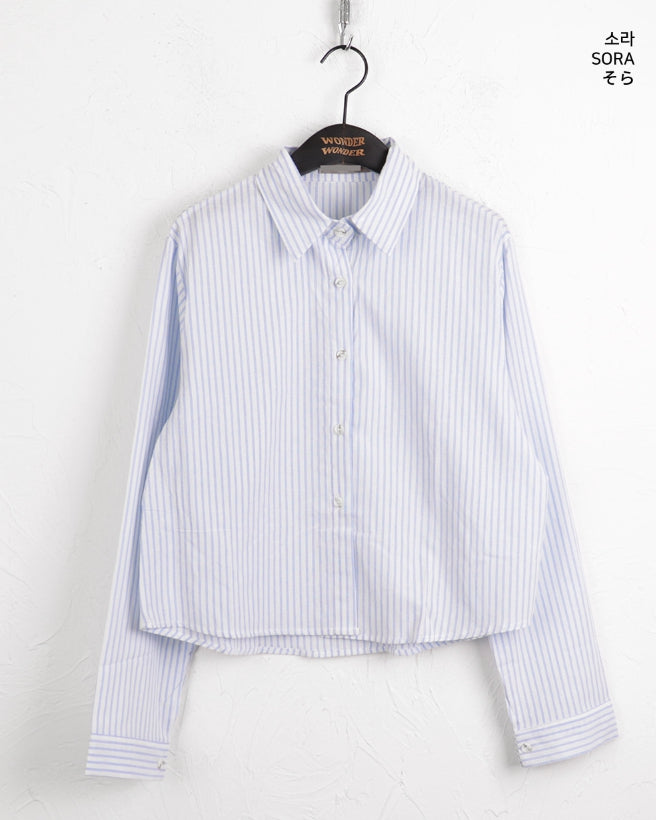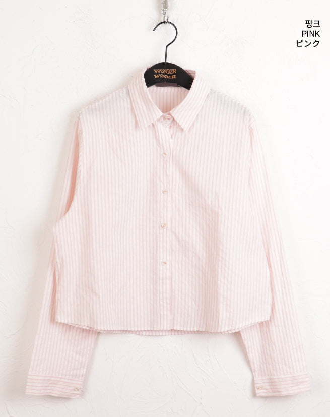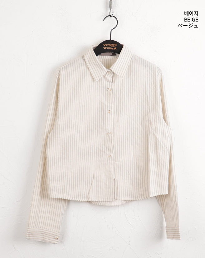 Eiteun Stripe Cotton Crop Long Sleeve Shirt