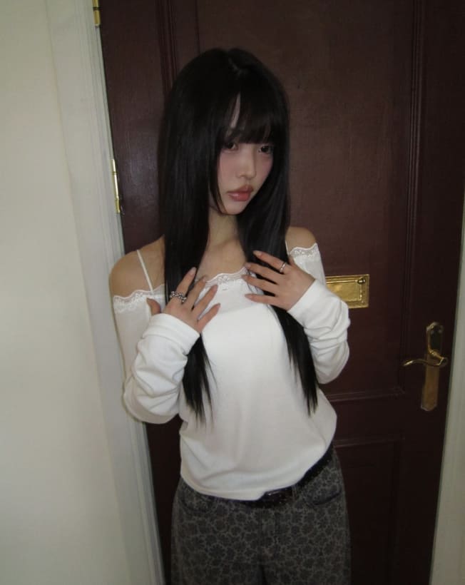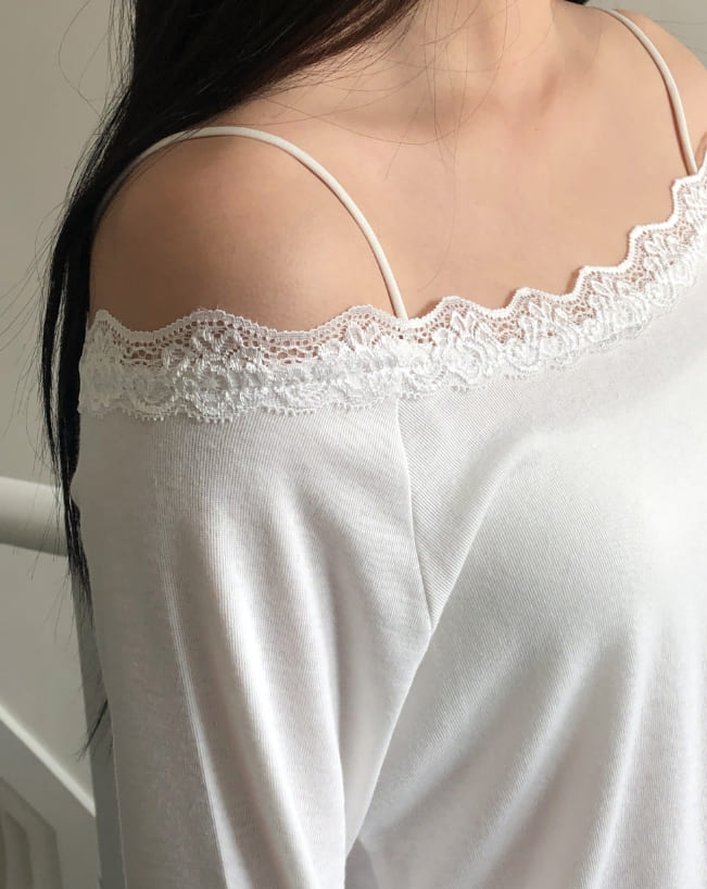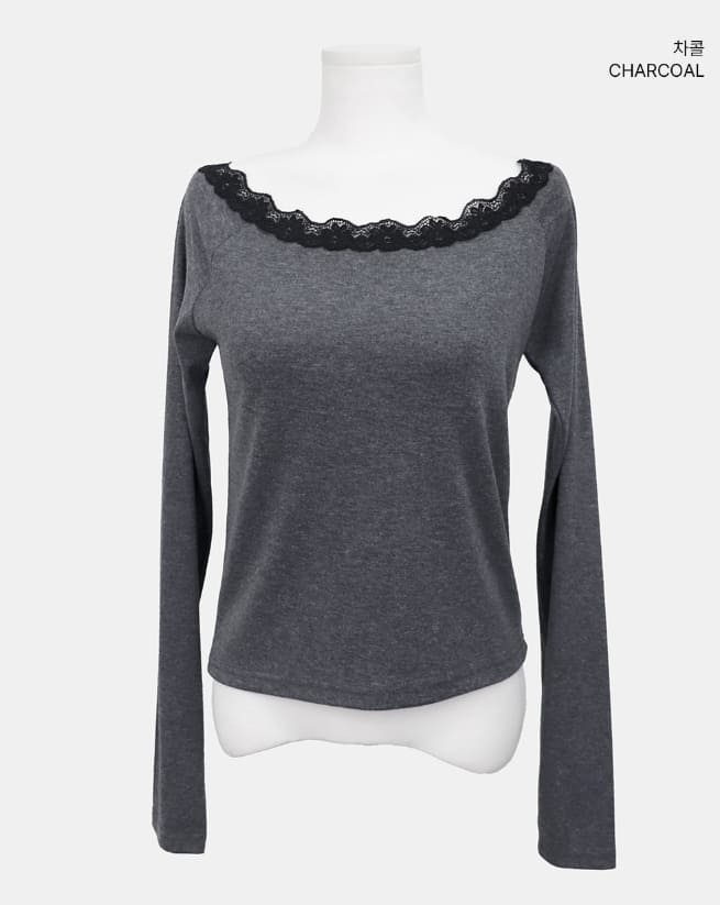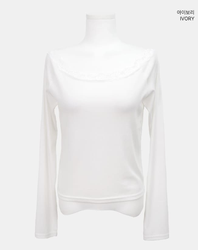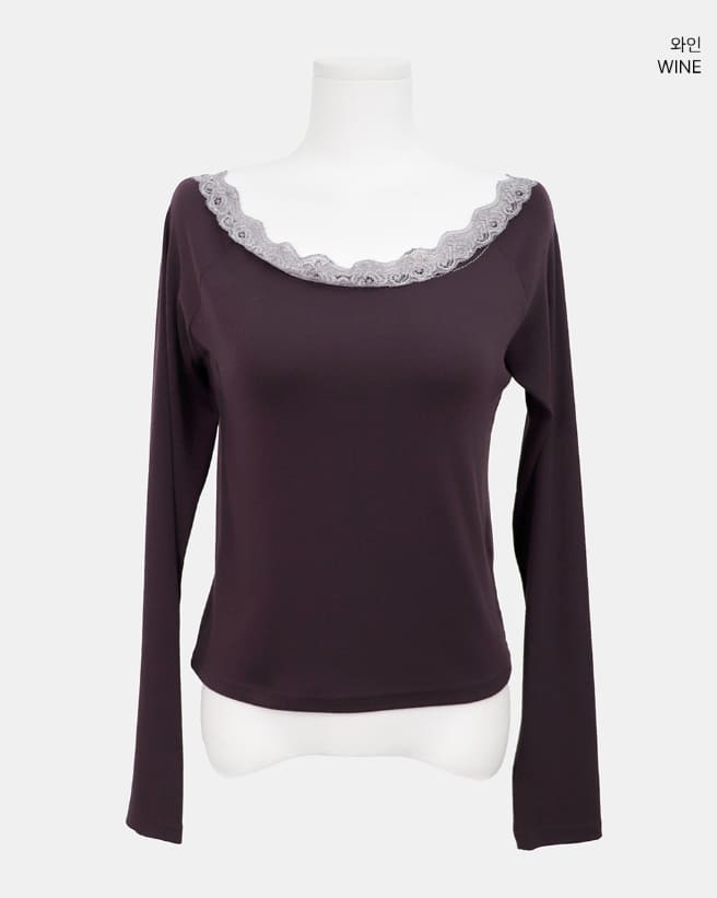 Enyu Lace Lip Neck Long Sleeve T-Shirt