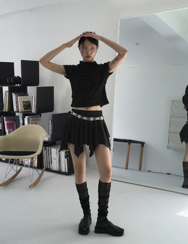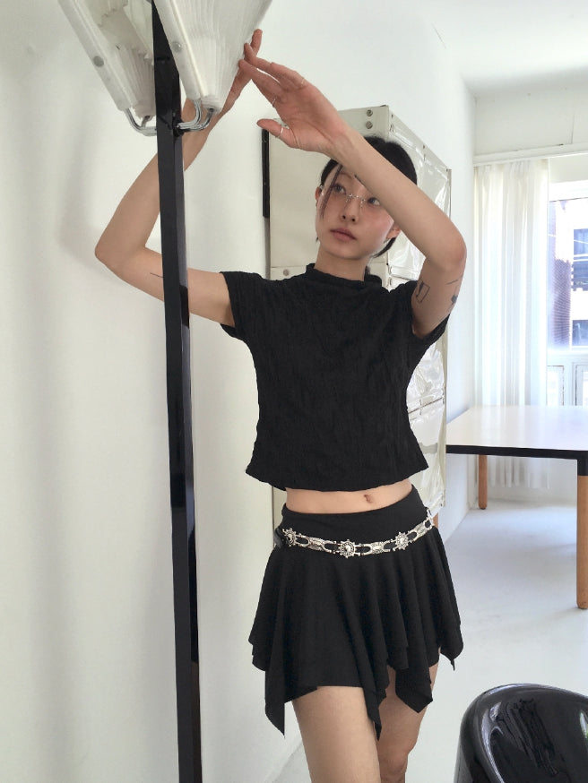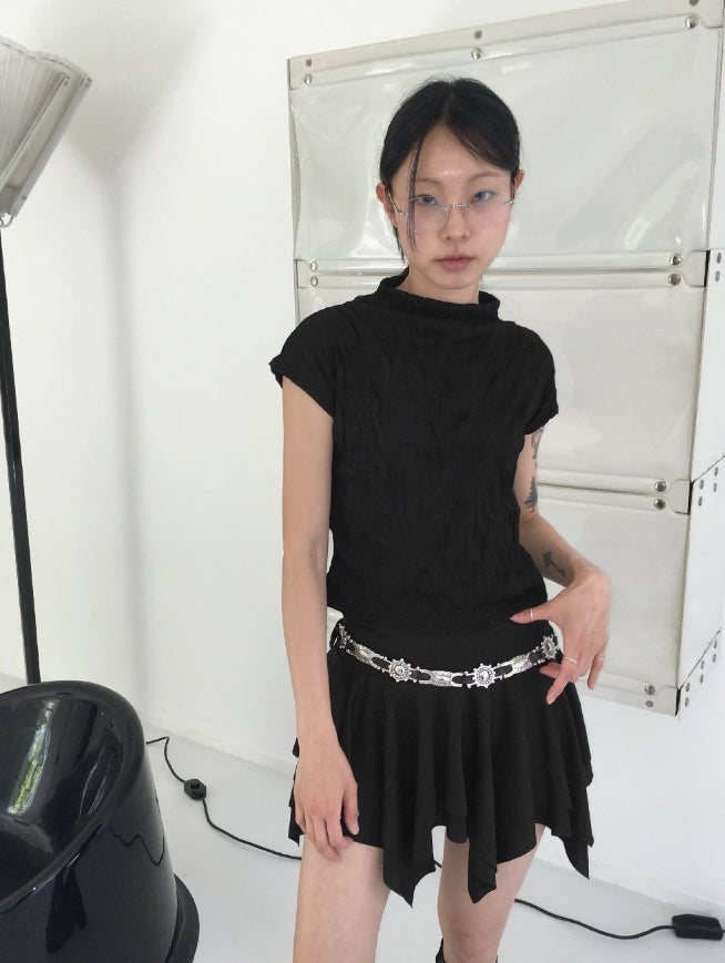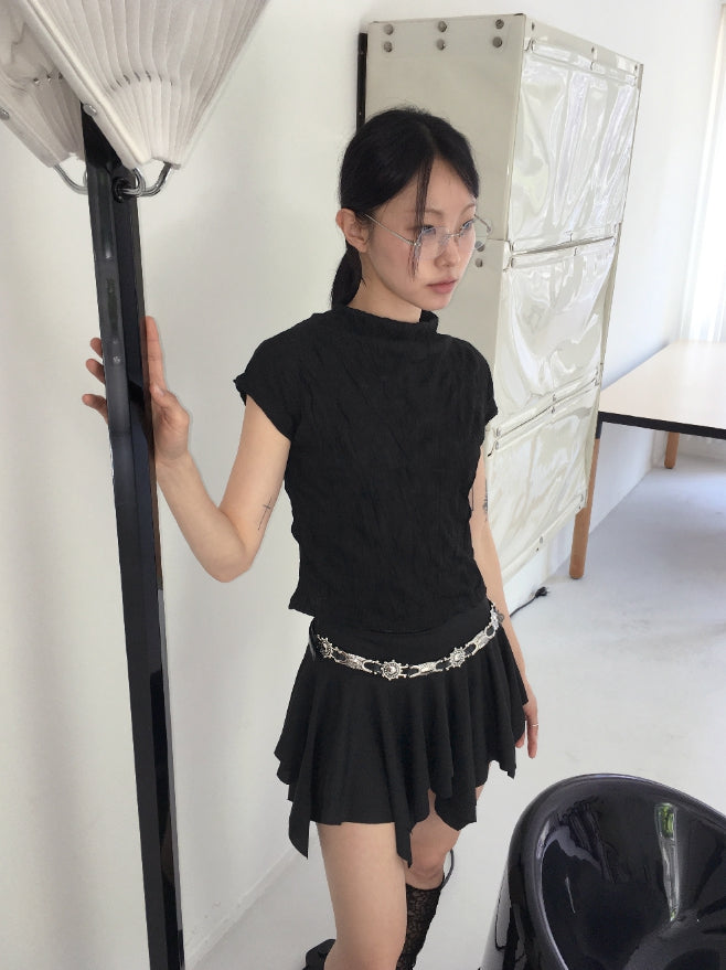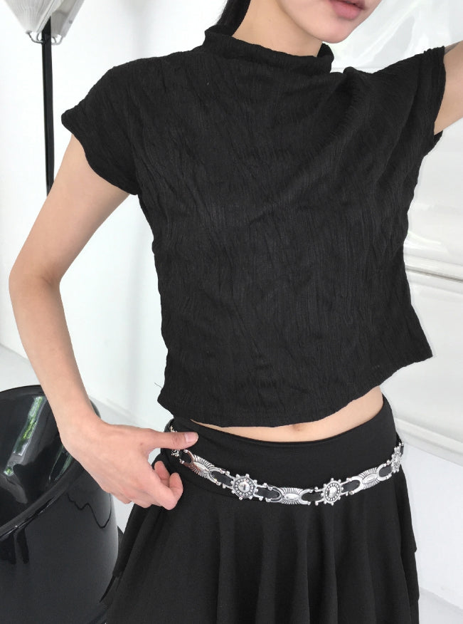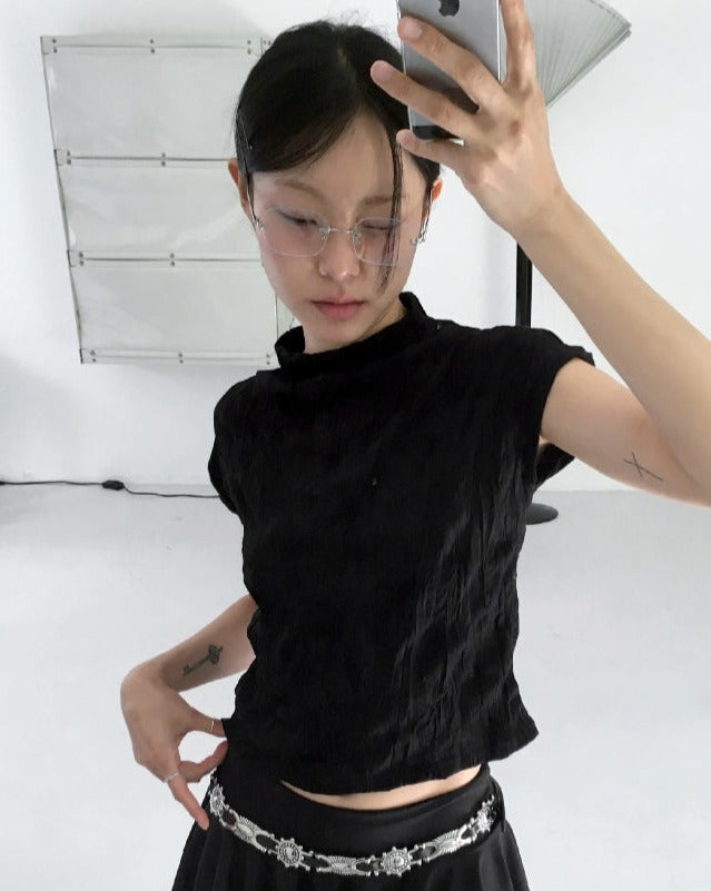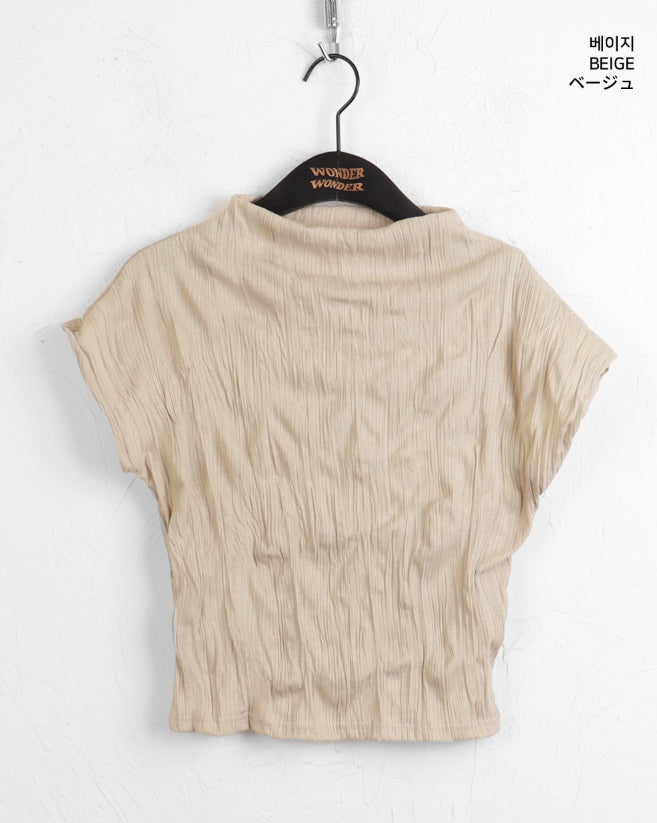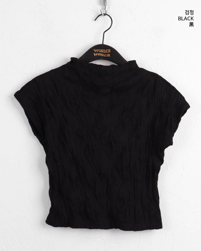 エターハーフネックシャーリングしわ袖なしブラウス