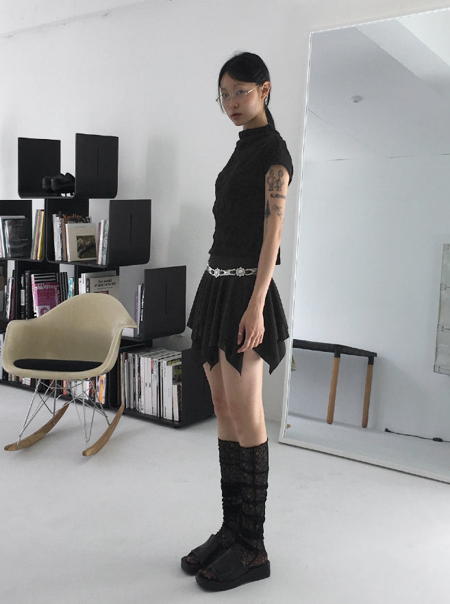 ether half-neck shirring pleated sleeveless blouse