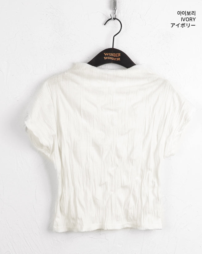 エターハーフネックシャーリングプリーツノースリーブブラウス