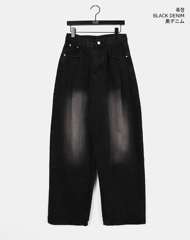 イートンワンピンタックウォッシングワイドデニムパンツ