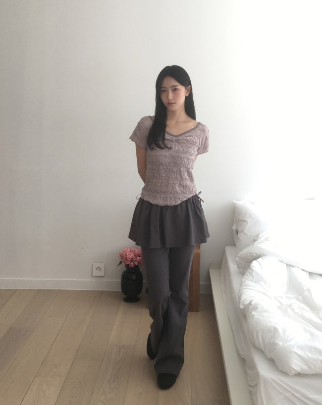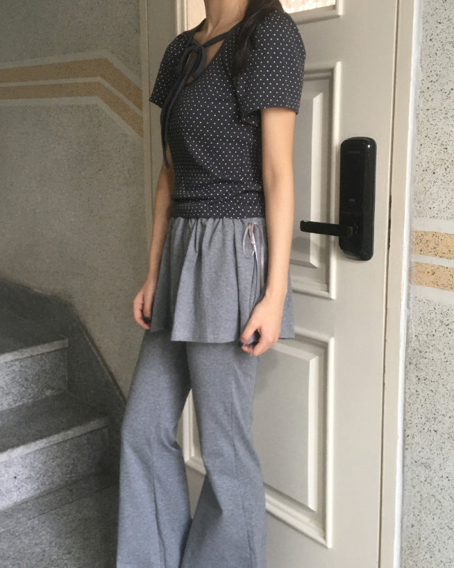 [Fake Layered] Cutin Ribbon Skirt Leggings Pile Skirt Pants