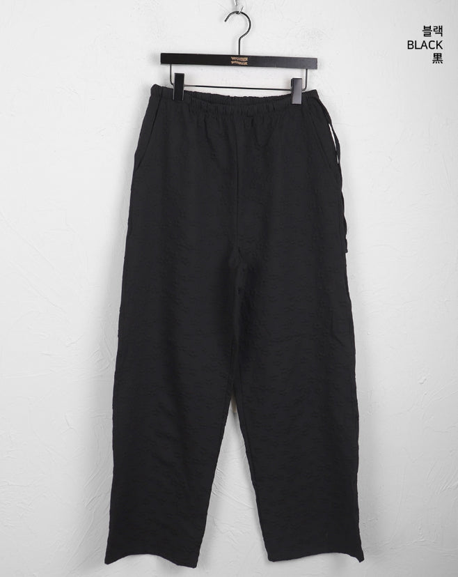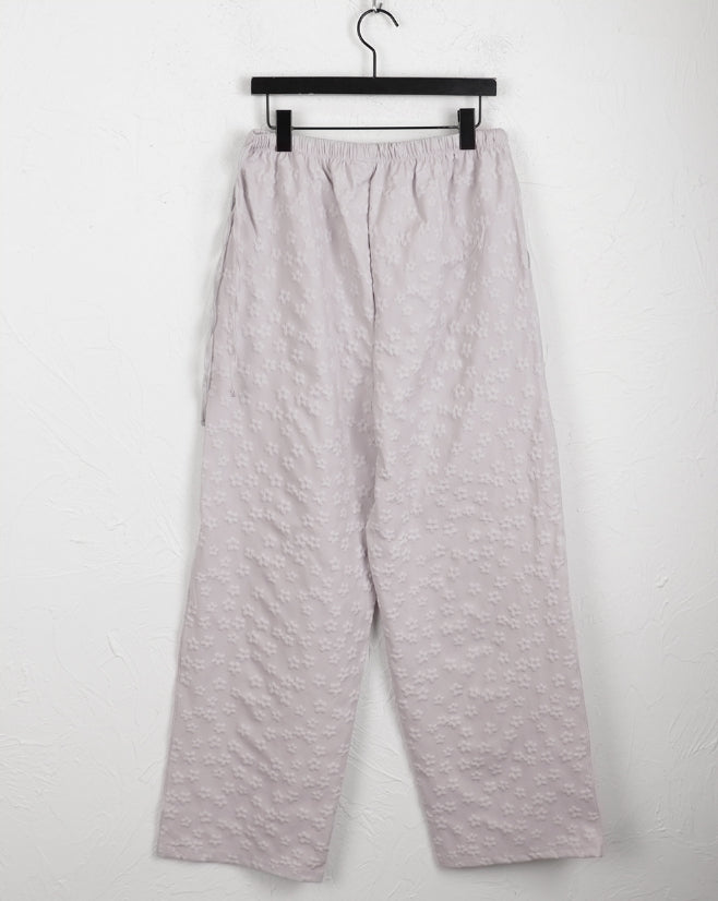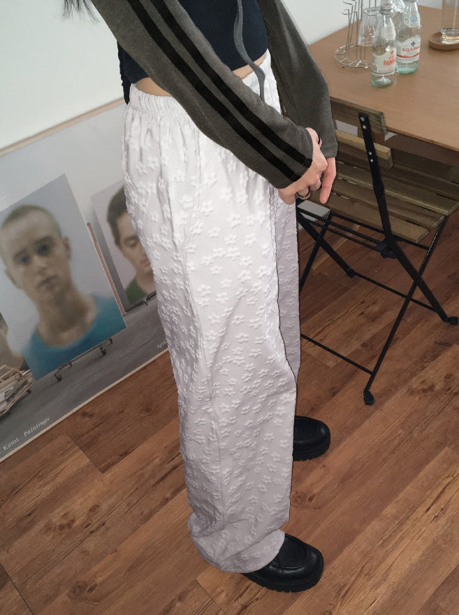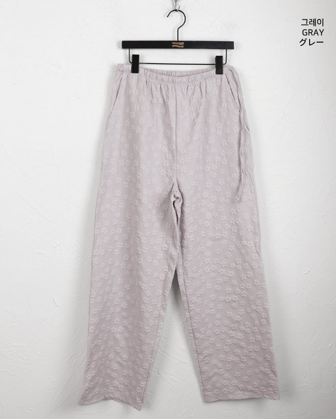Fit Flower Embossing Ribbon Strap Banding Long Wide Pants