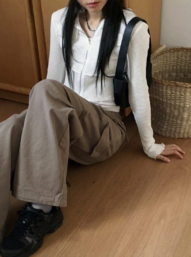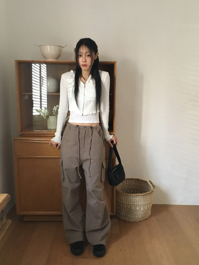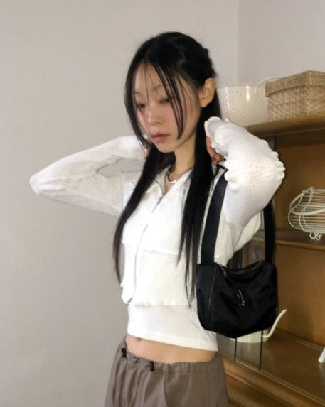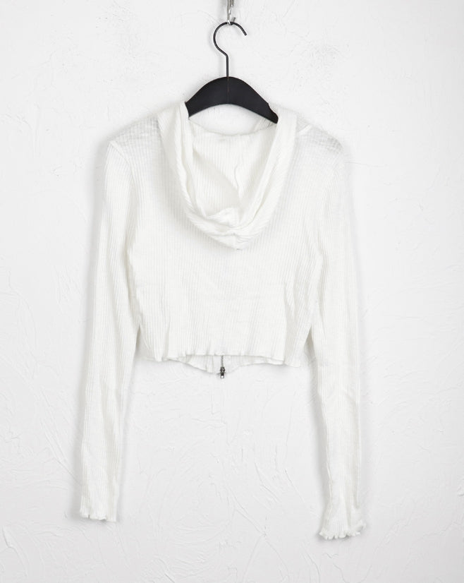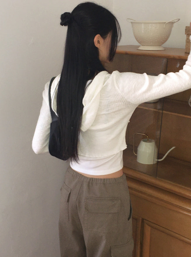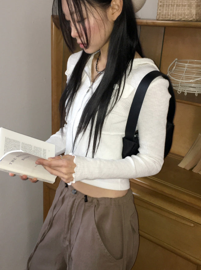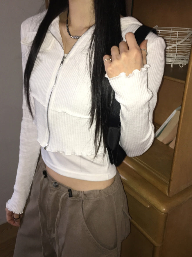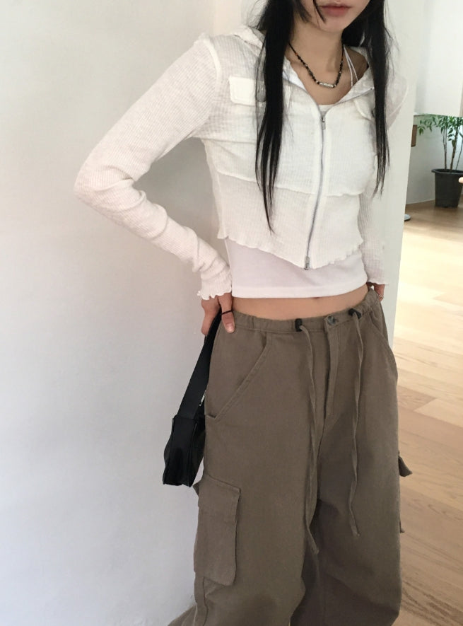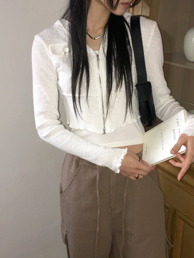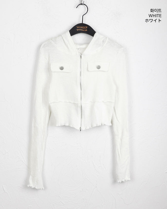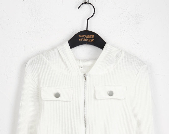 fixer ribbed pocket crop hood zip-up