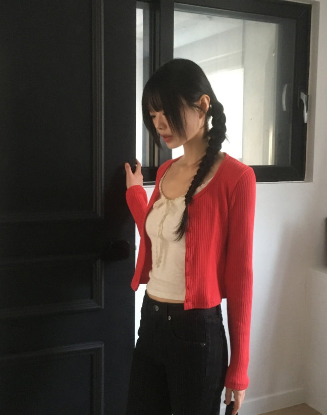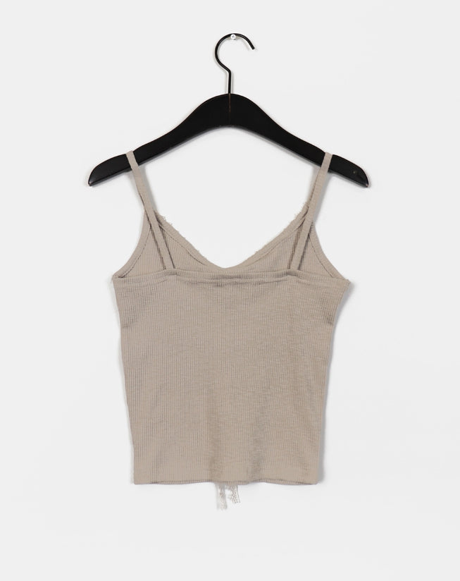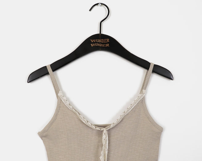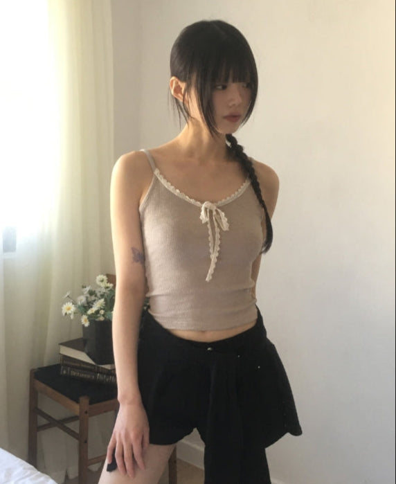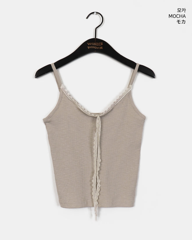 Fruit Ribbed Lace Ribbon Inner Layered Sleeveless