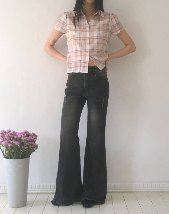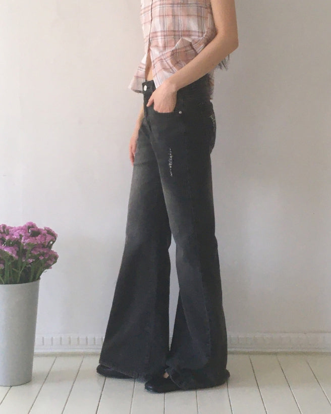 フーレンウォッシュ加工ブーツカットデニムパンツ