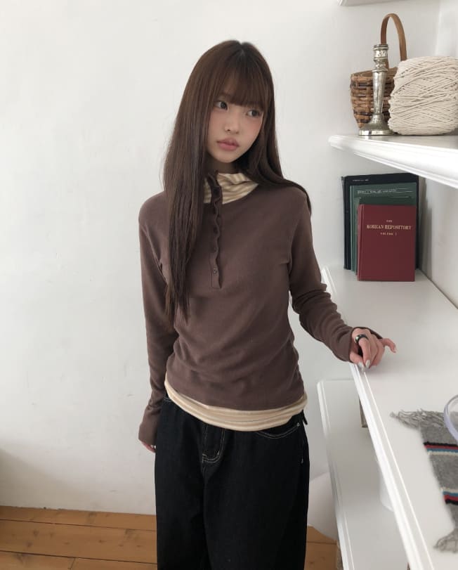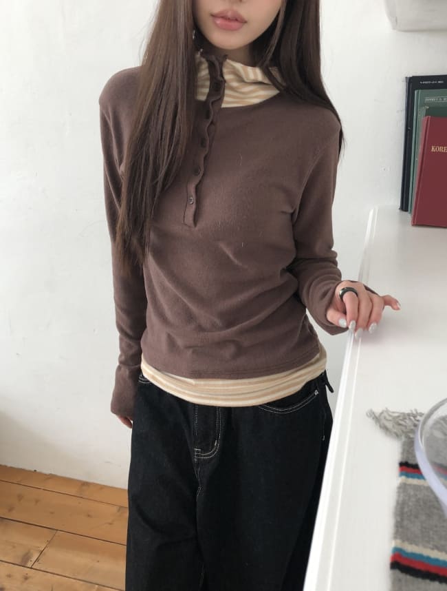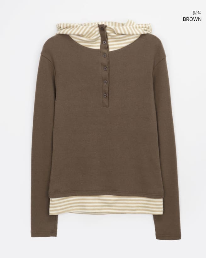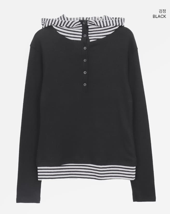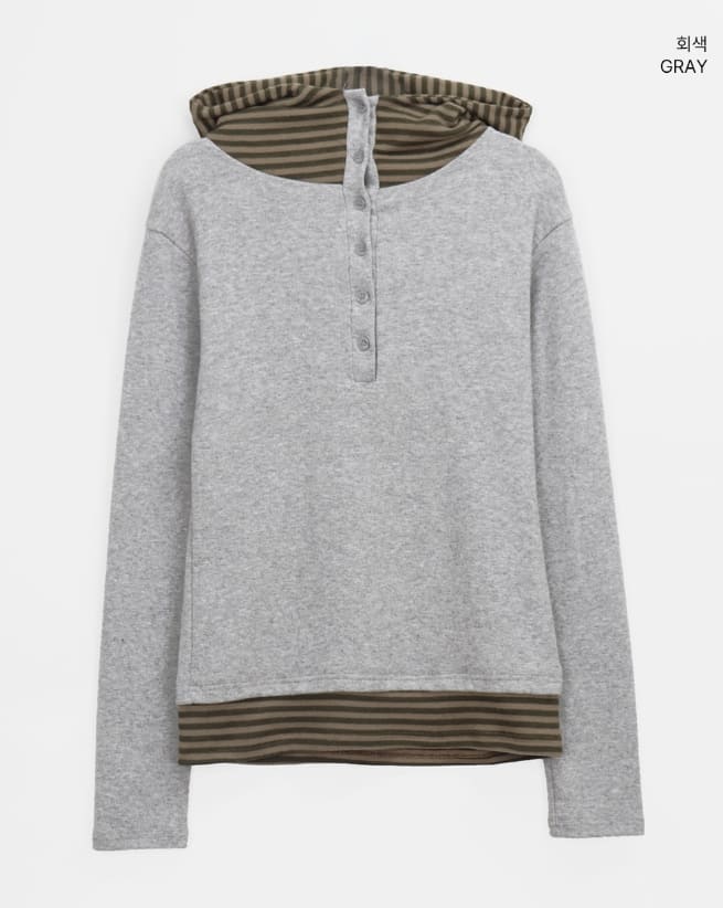Gian High Neck Color Matching Fleece Hood T-shirt