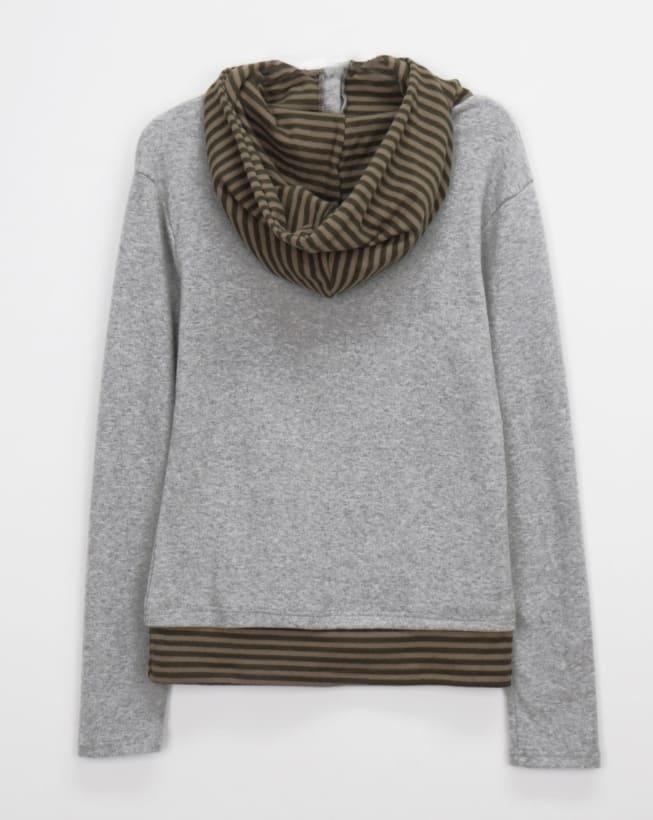 Gian High Neck Two-tone Fleece Hooded T-shirt