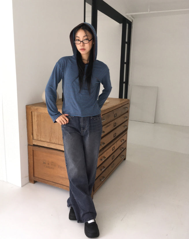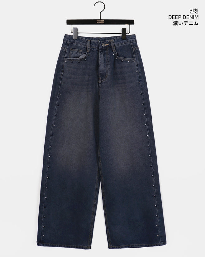Gut Vintage Washing Rivet Studded Wide Denim Pants