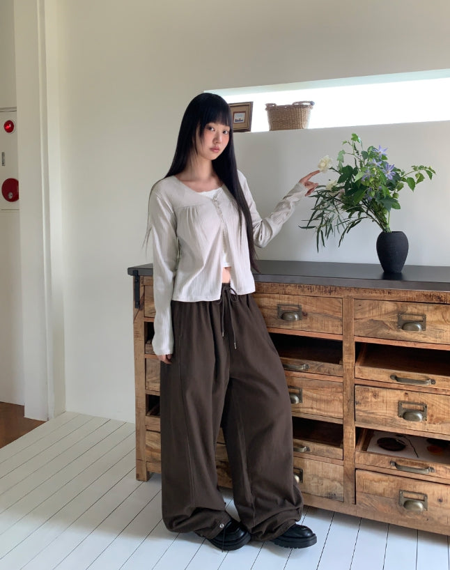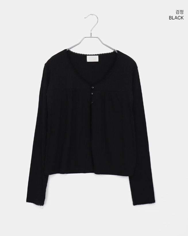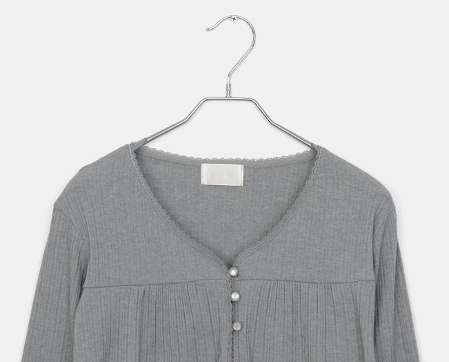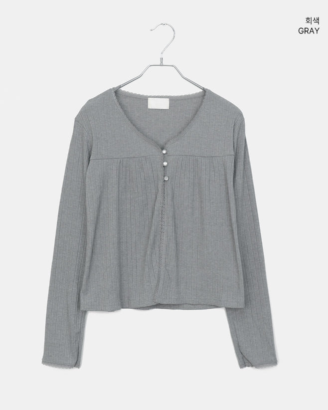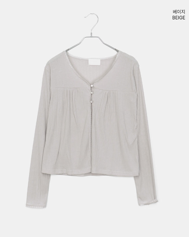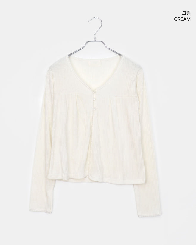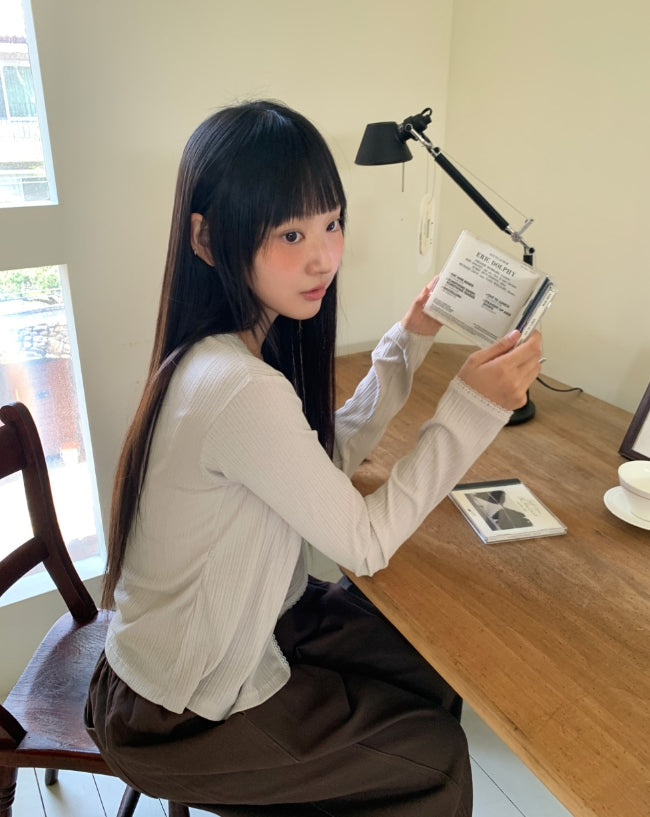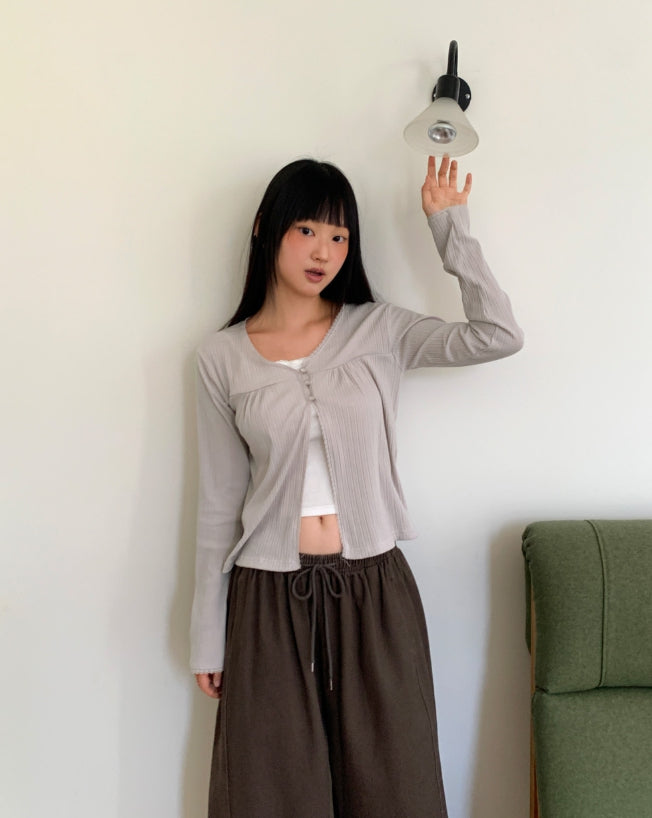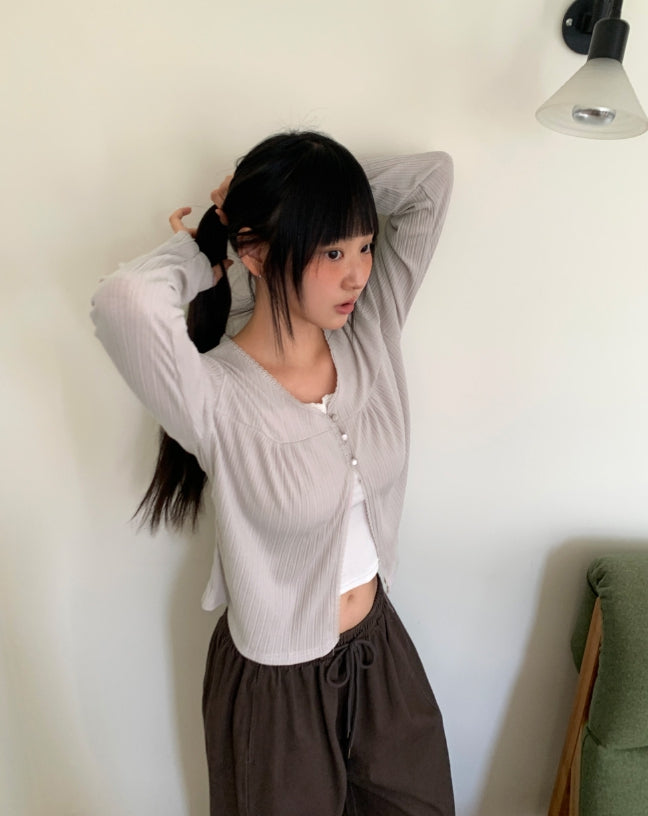 Gyuri Frill Bean Button Long Sleeve Cardigan