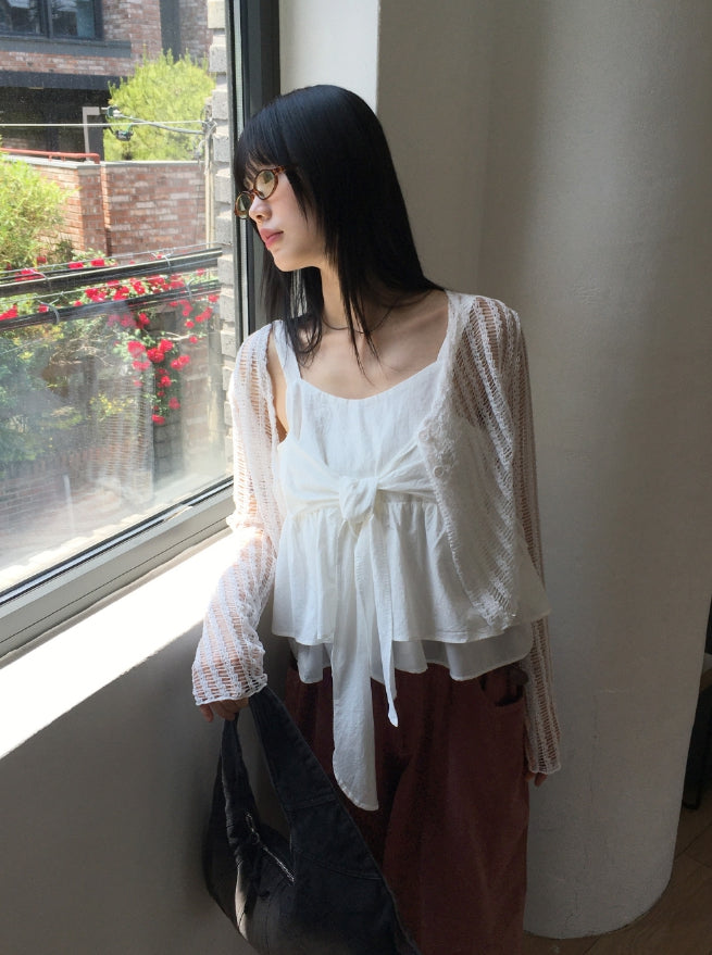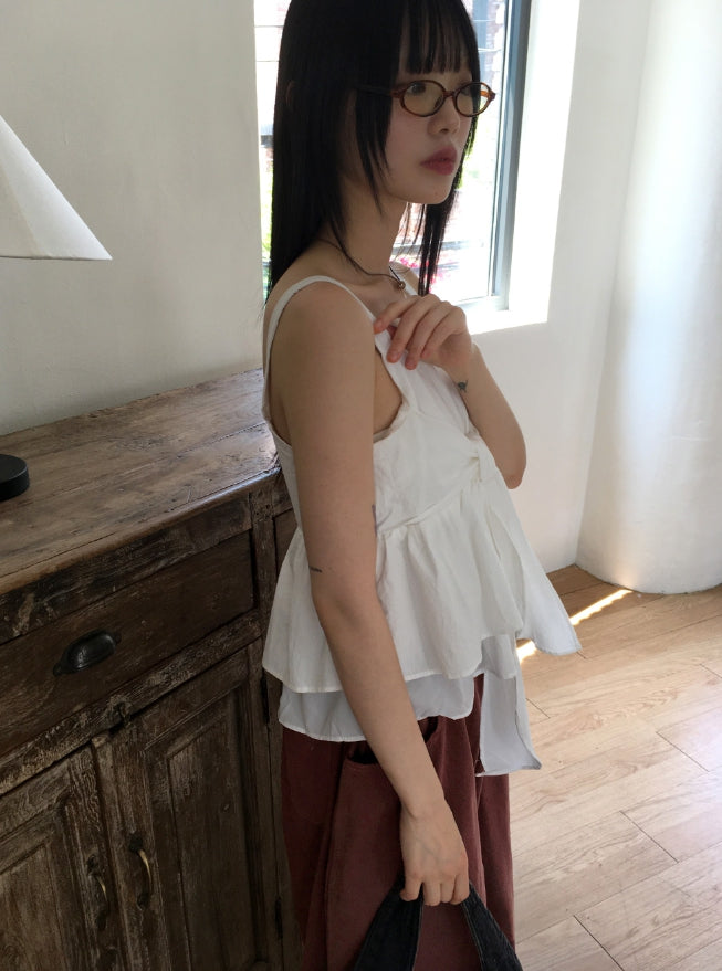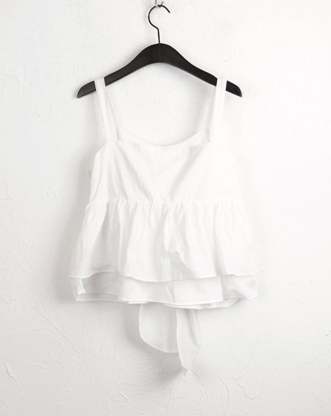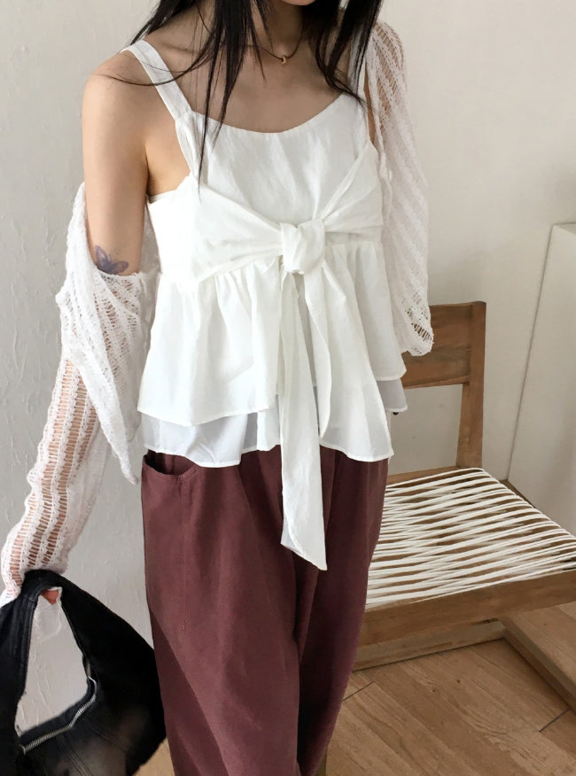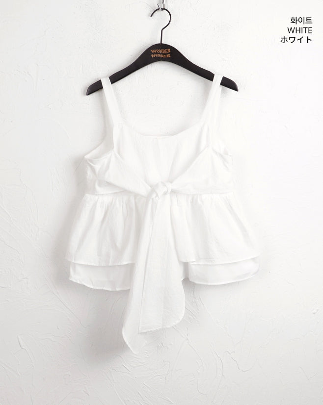 Haj ribbon tie strap flare sleeveless blouse