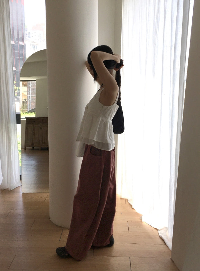 Hajeu ribbon tie strap flare sleeveless blouse