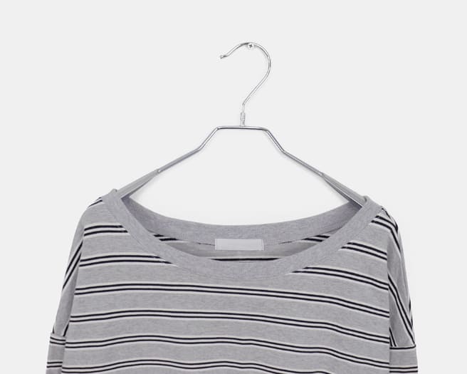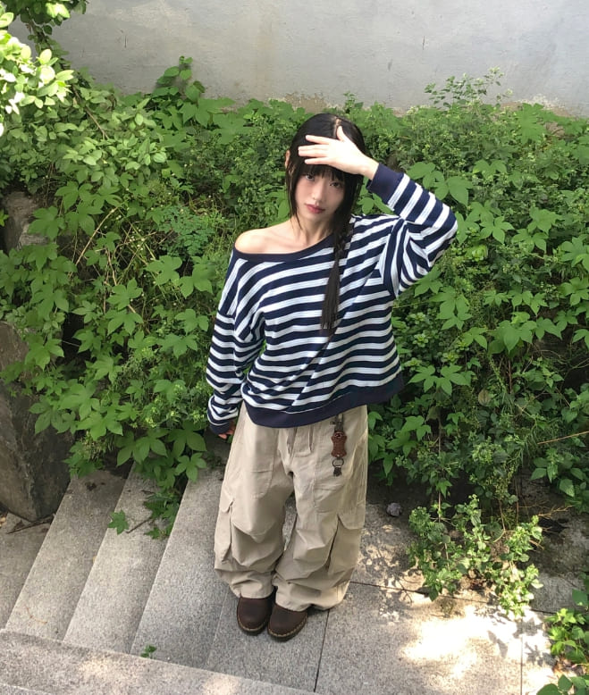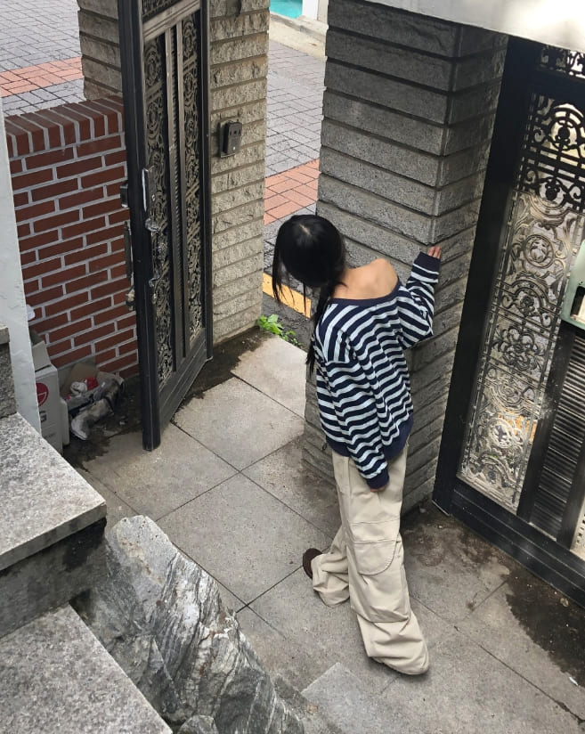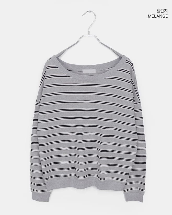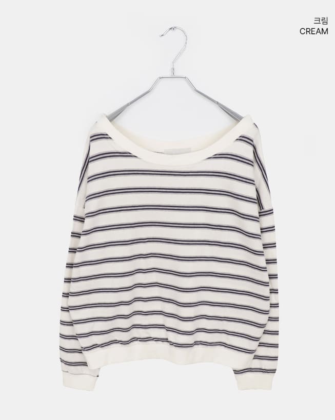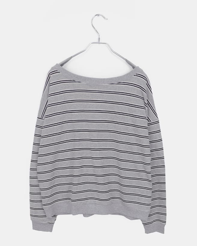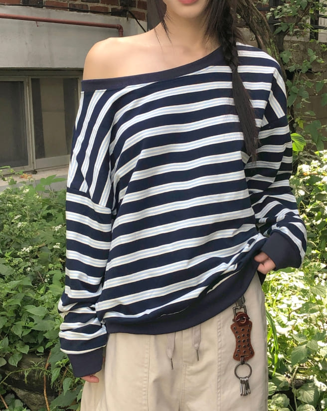 ハングキーストライプワンオフショルダーオーバーフィット長袖マントマン