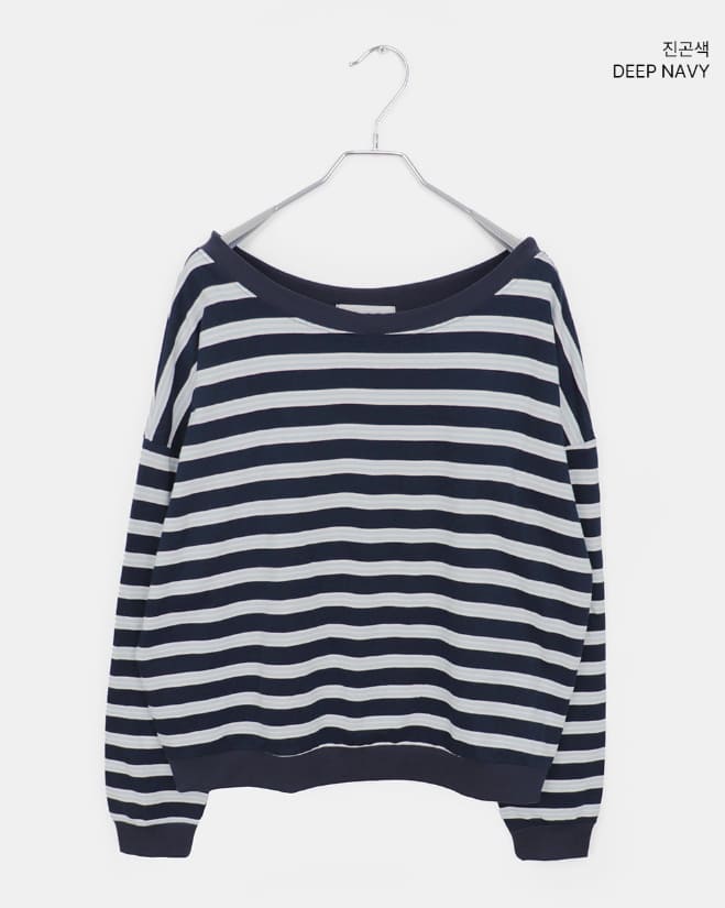 Hanky Stripe One-Off Shoulder Overfit Long Sleeve Man-to-Man