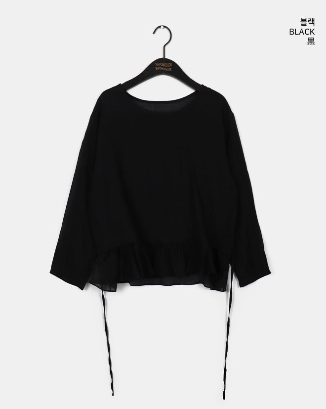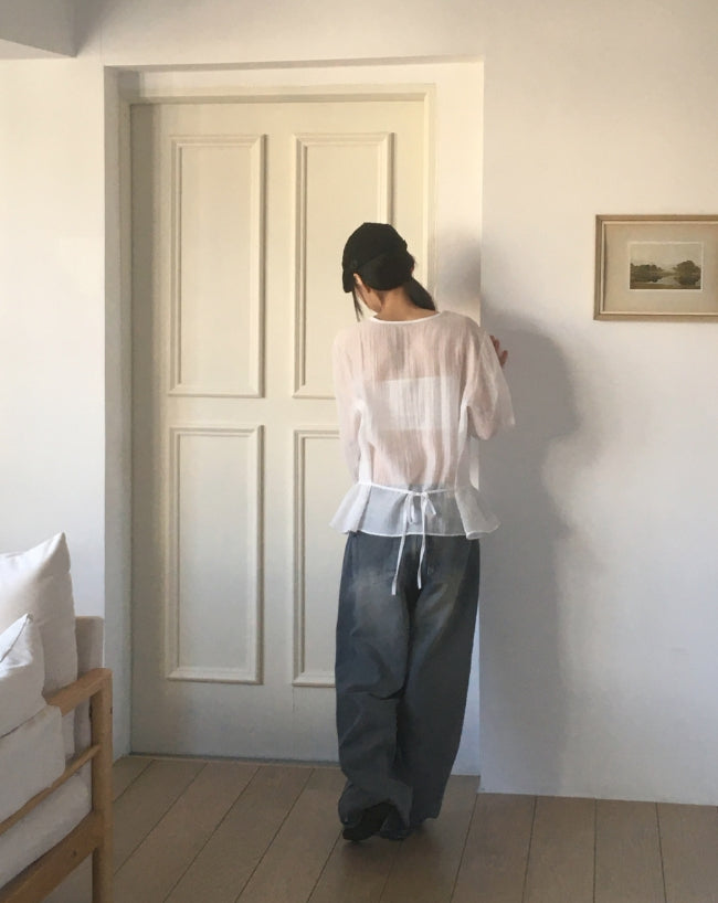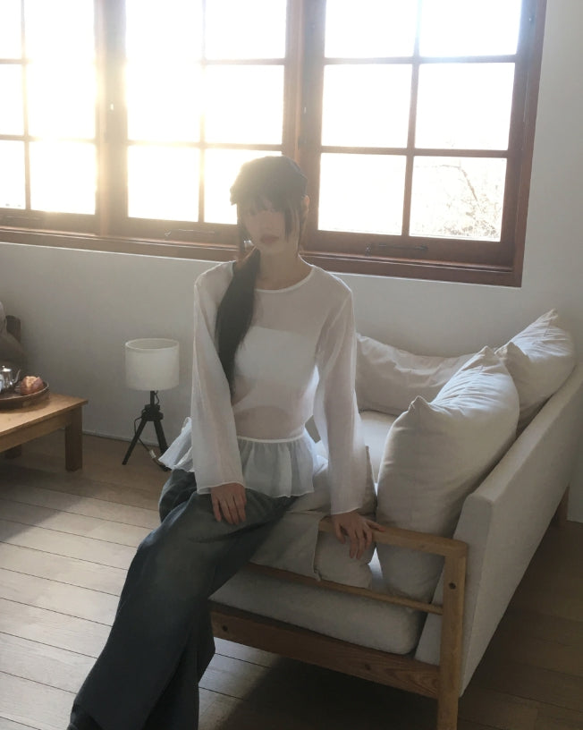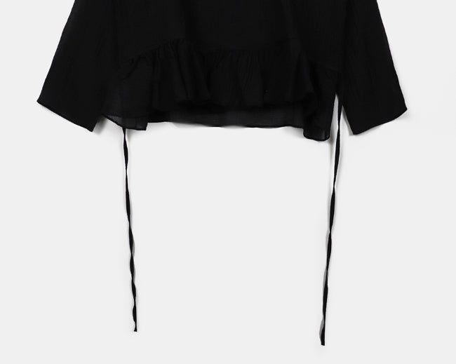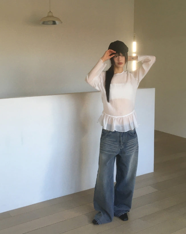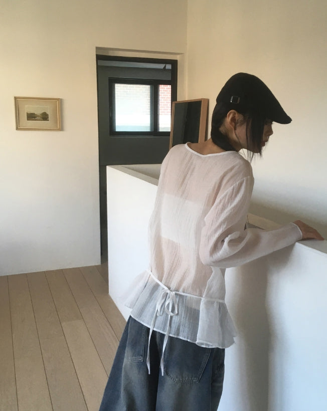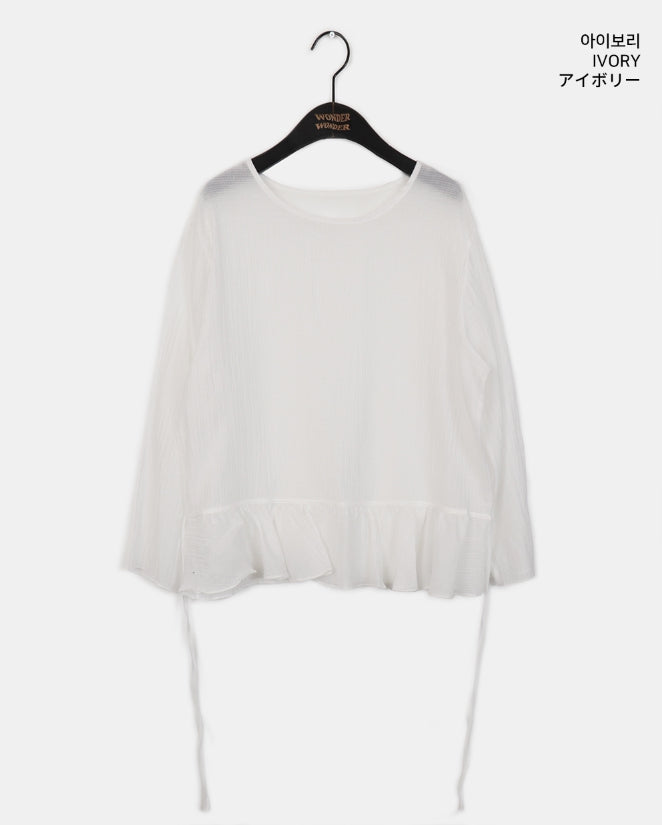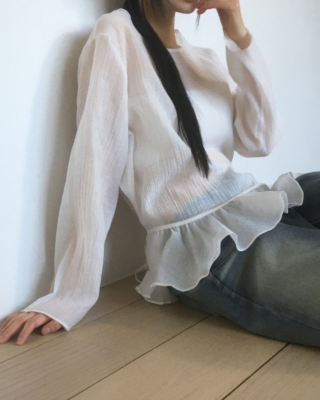 ハッシュシースルーフリルストラップレイヤードブラウス