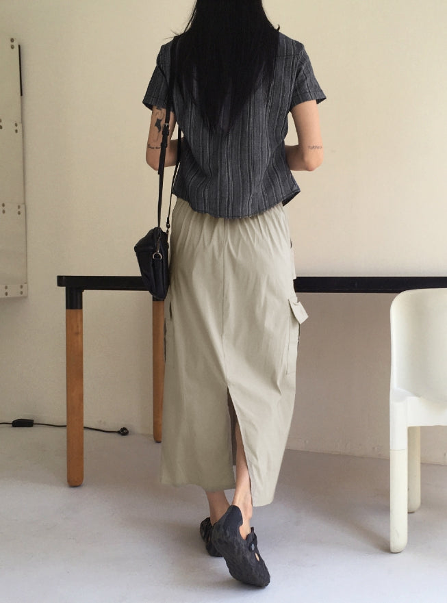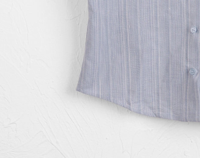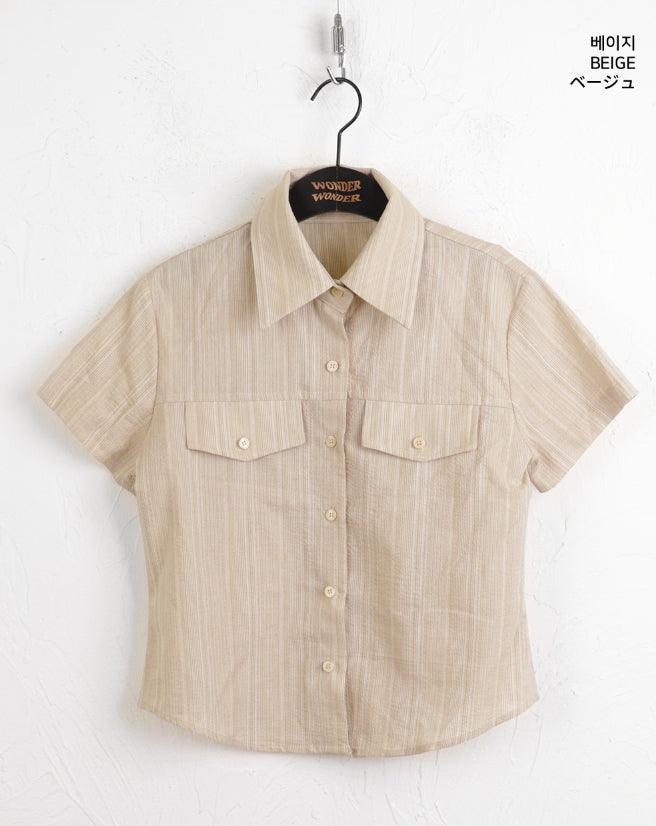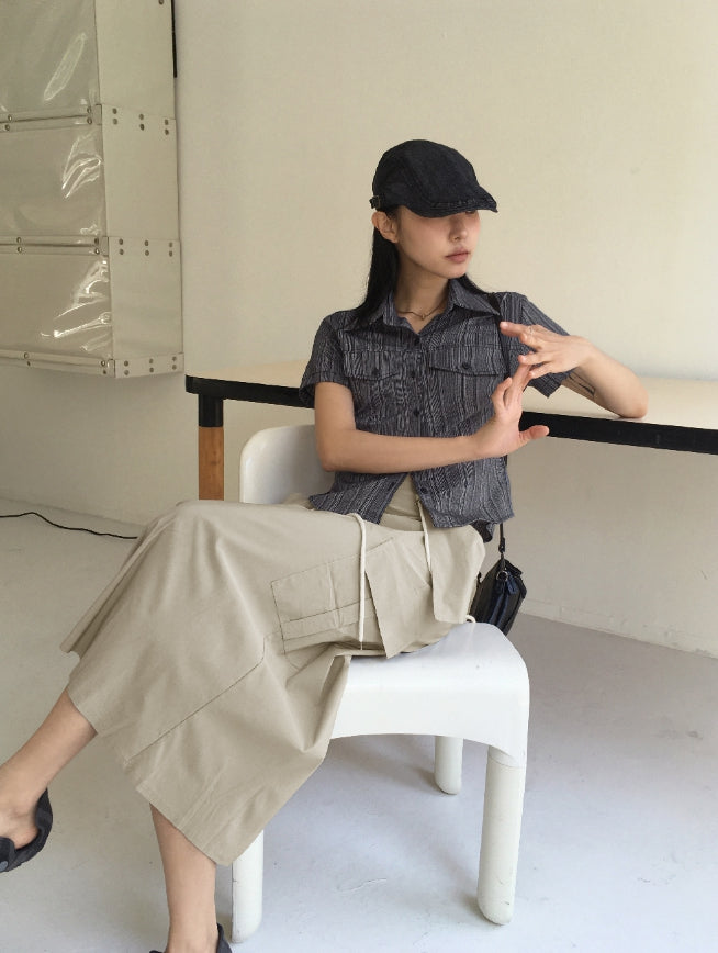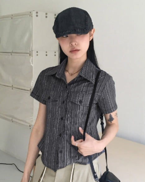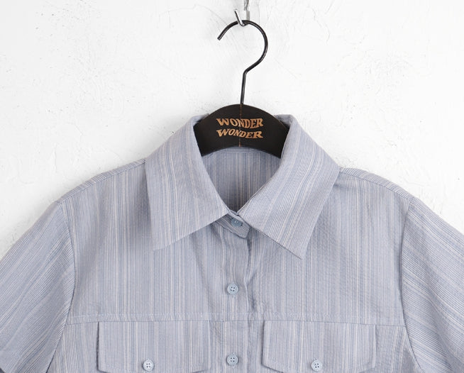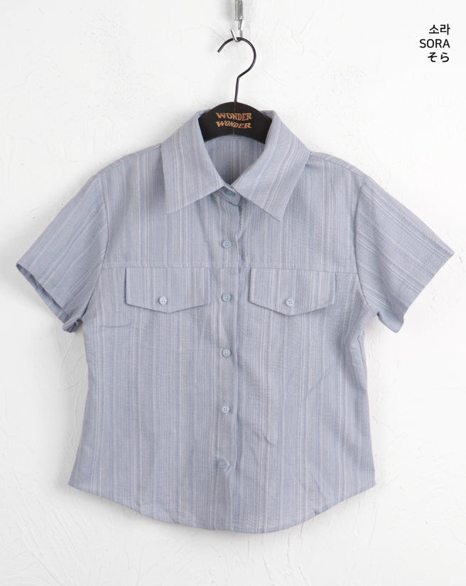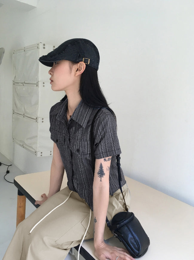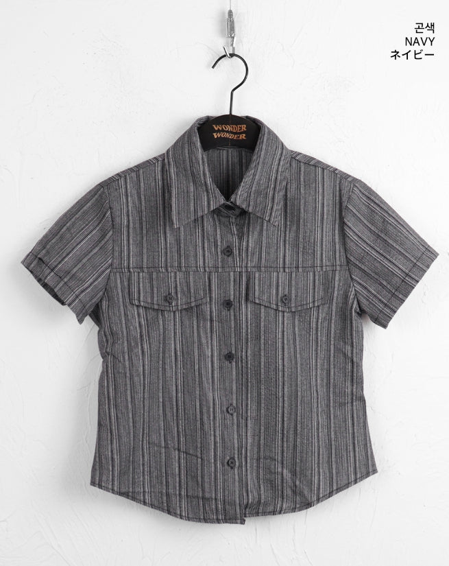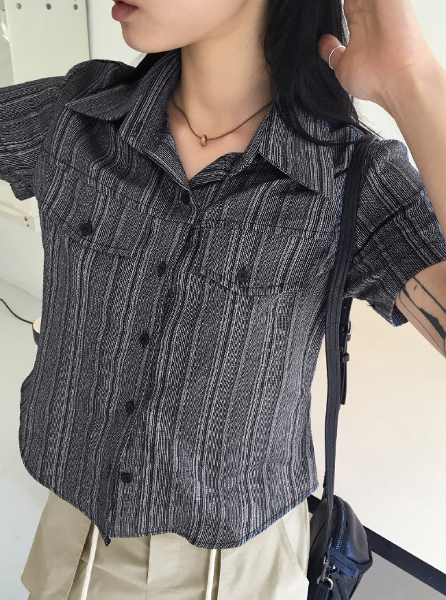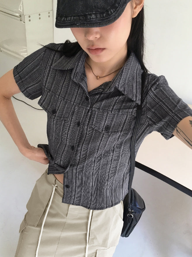 Hash Western Stripe Pocket Rolling Crop Short Sleeve Shirt