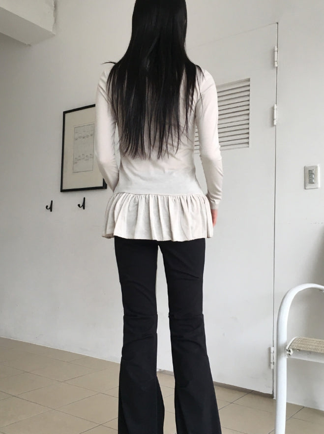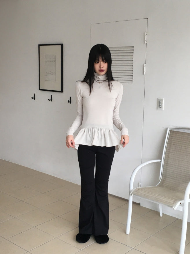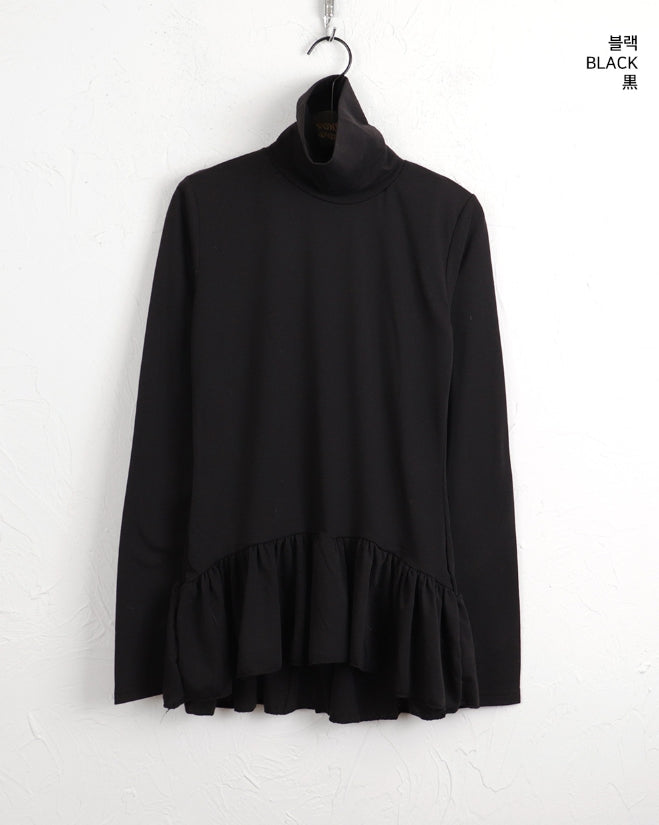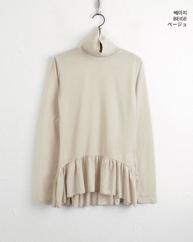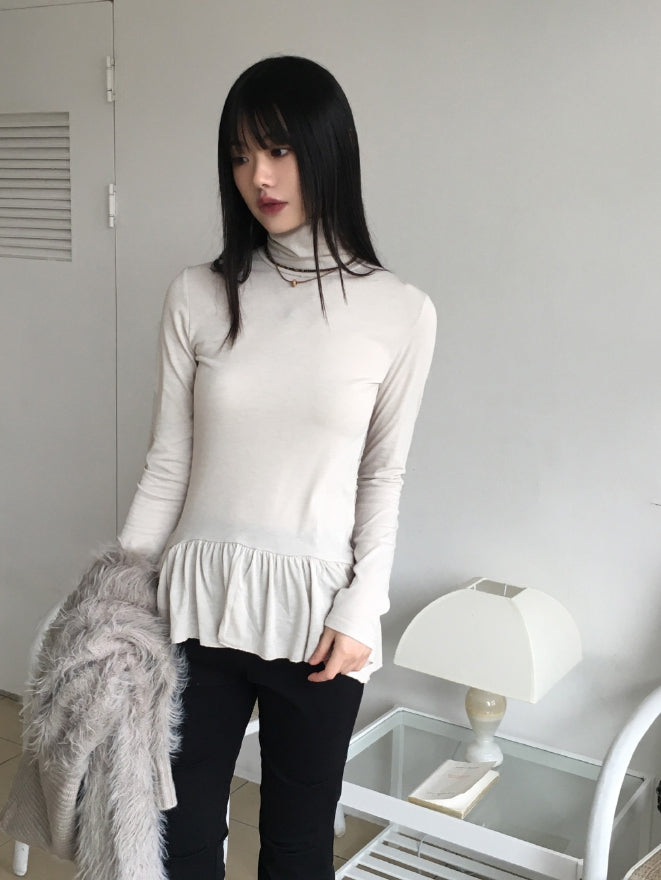 Hawk Frill Shirring Layered Brushed Turtleneck T-Shirt