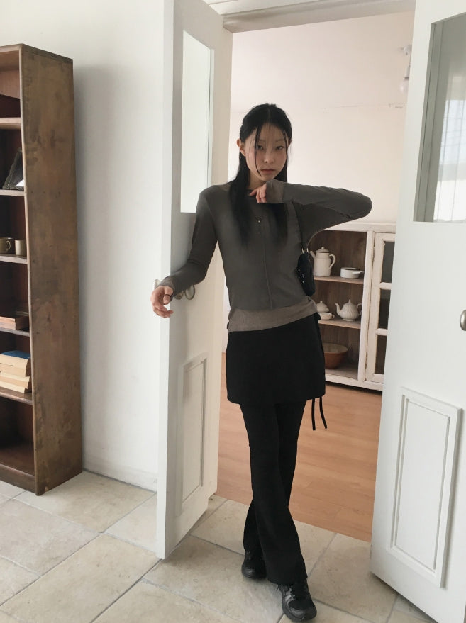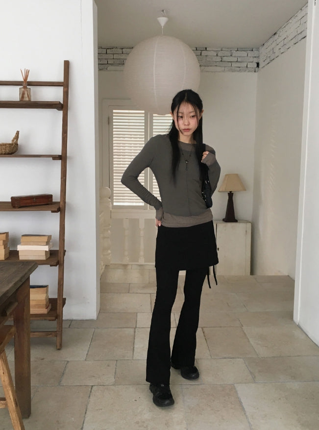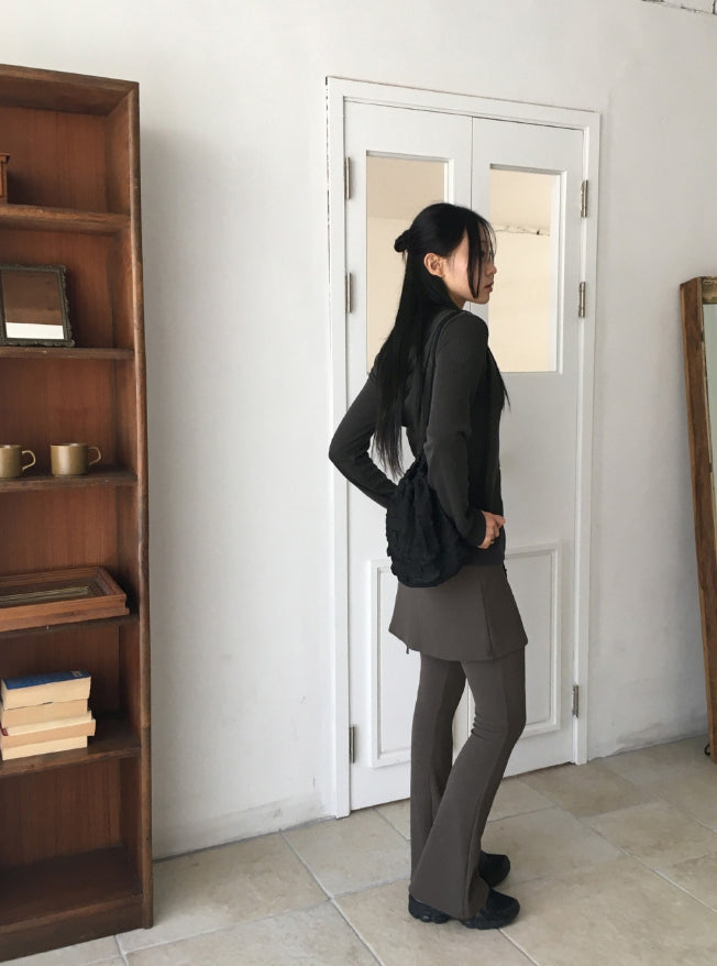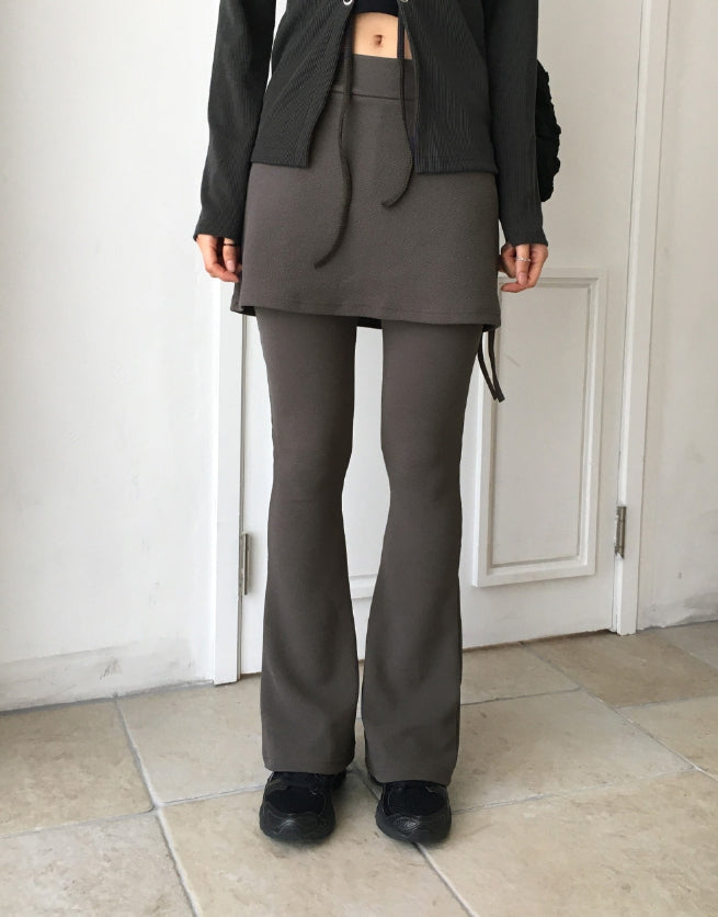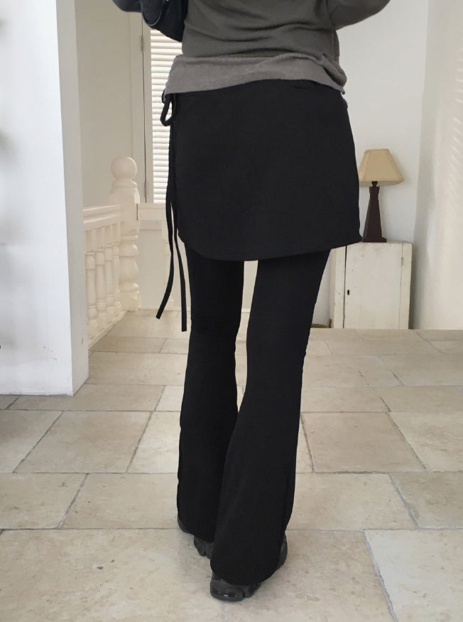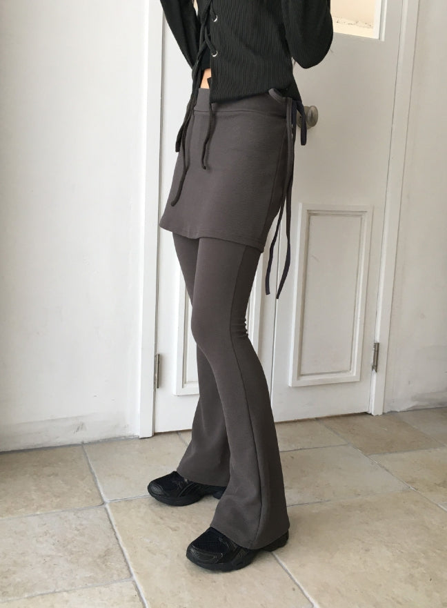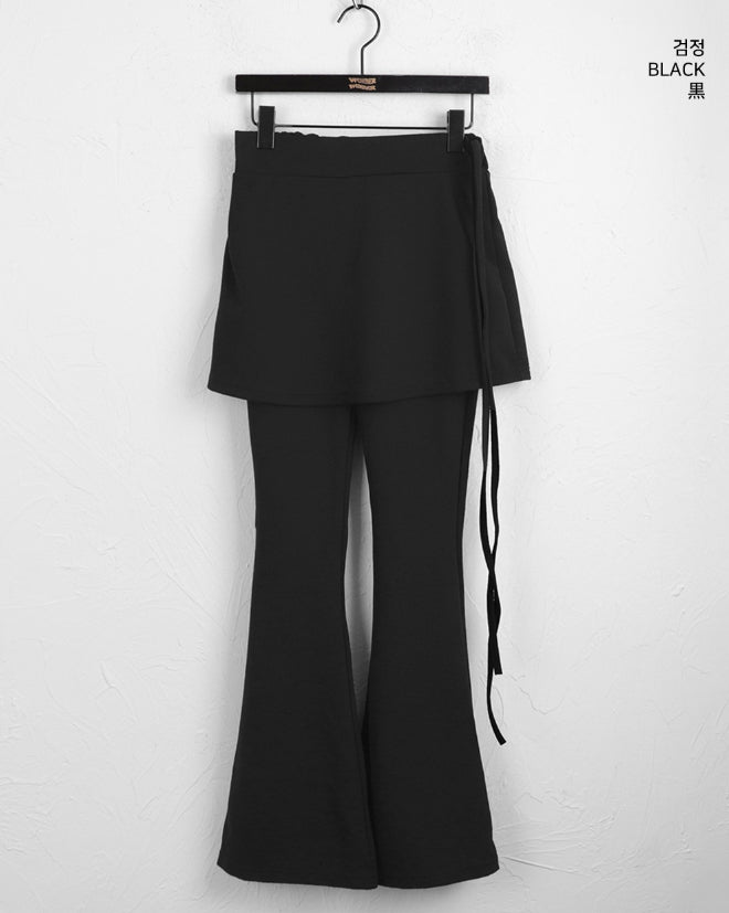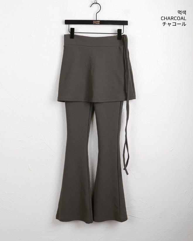 ヘッカストラップレイヤードスカートブーツカットパンツ