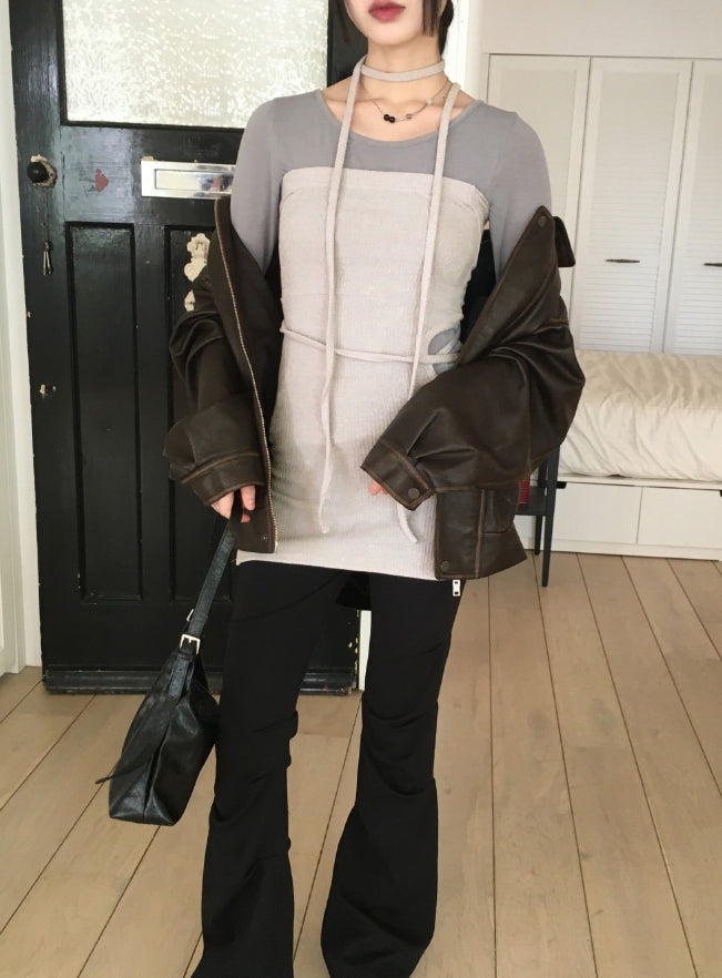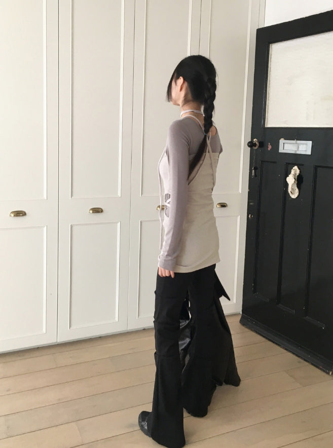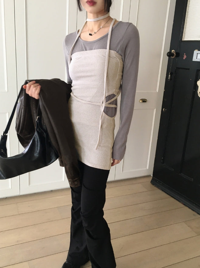 ヘミングスリットホールストラップレイヤードワンピーストップ