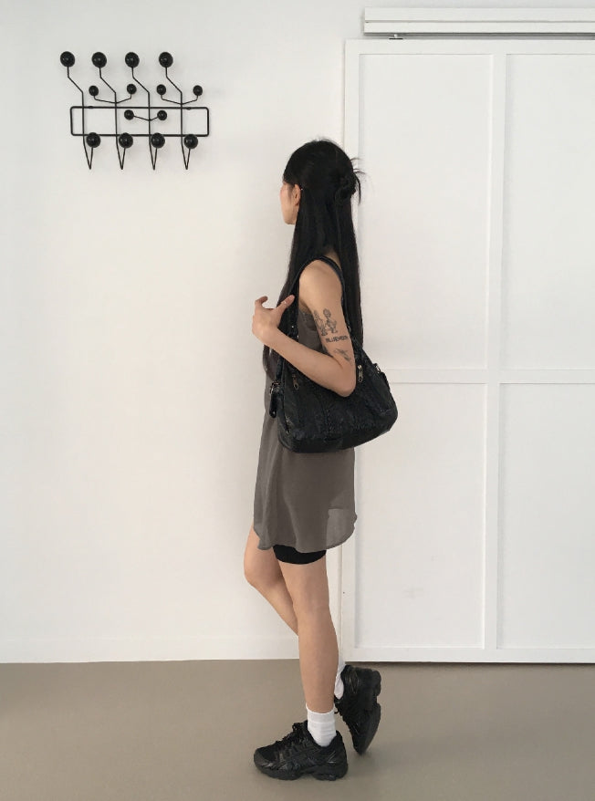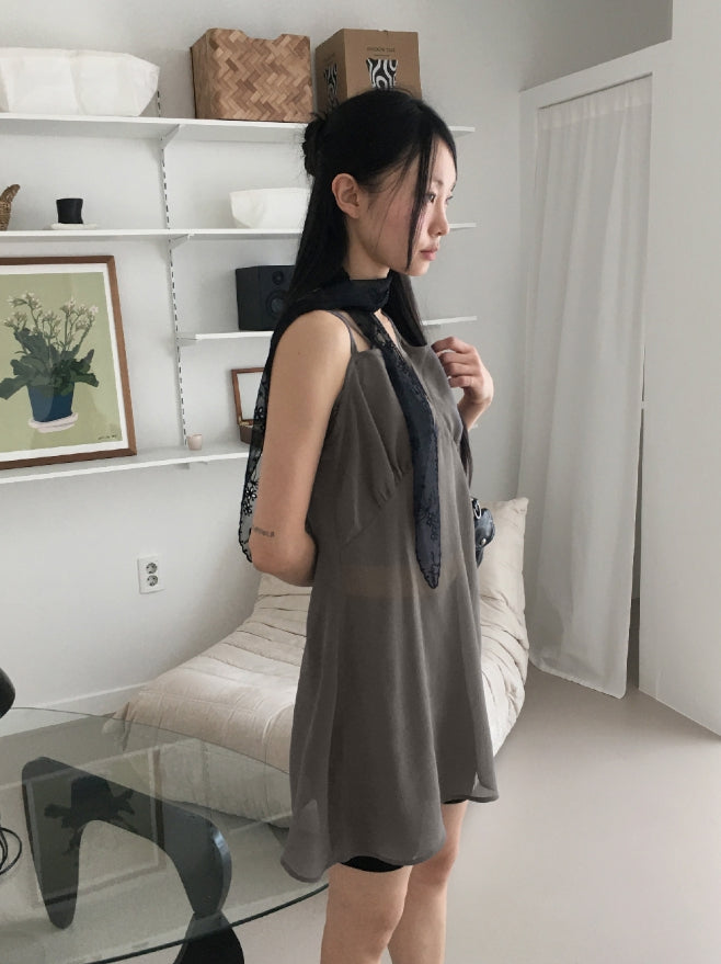 Hepple See-Through Slit Ribbon Adjustable Straps Layered Sleeveless Mini One Piece