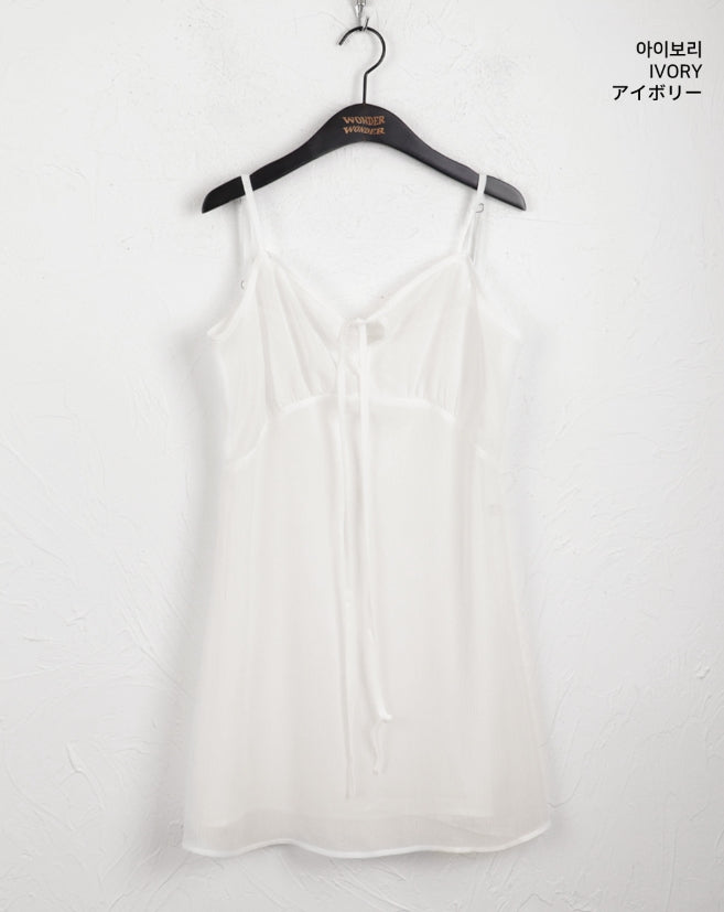 ヘップルシースルースリットリボンストラップレイヤードキャミソールミニワンピース