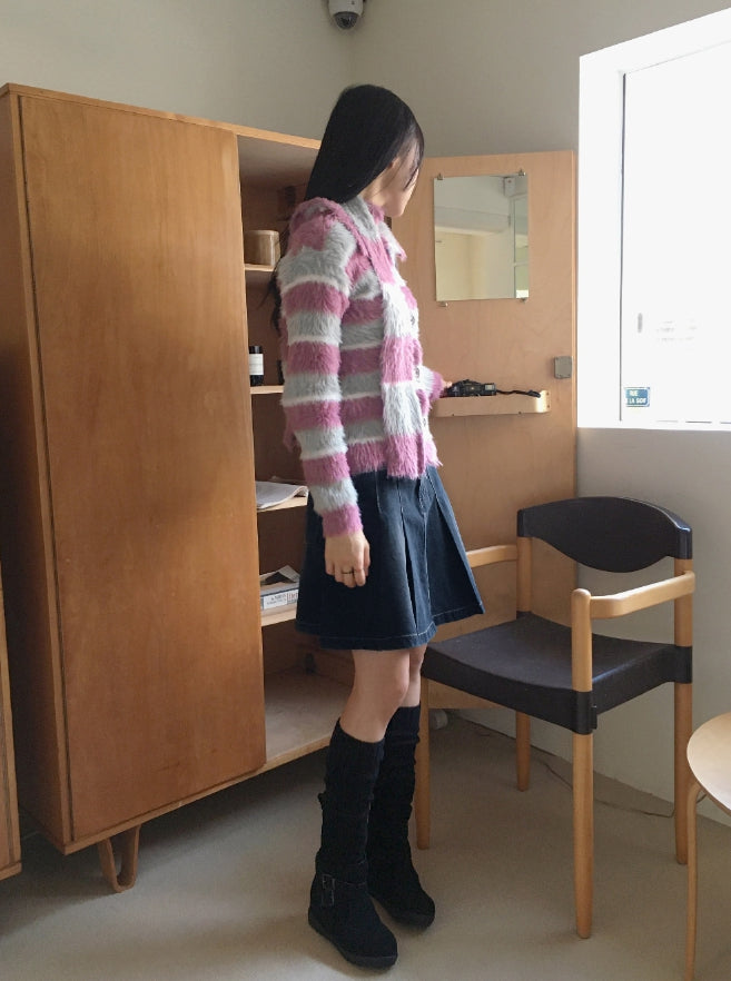 Heta Pleated Tennis Denim Midi Skirt