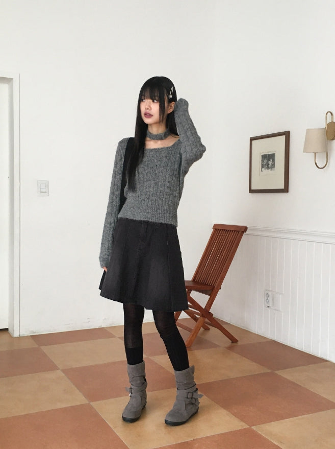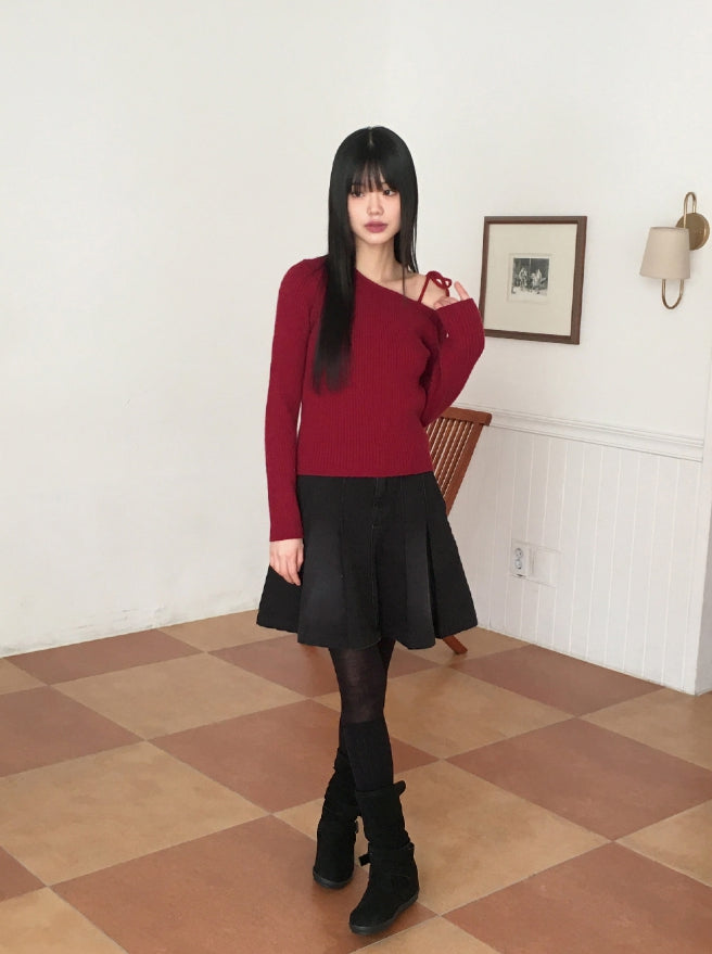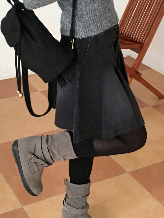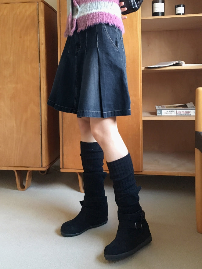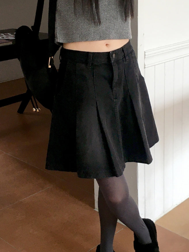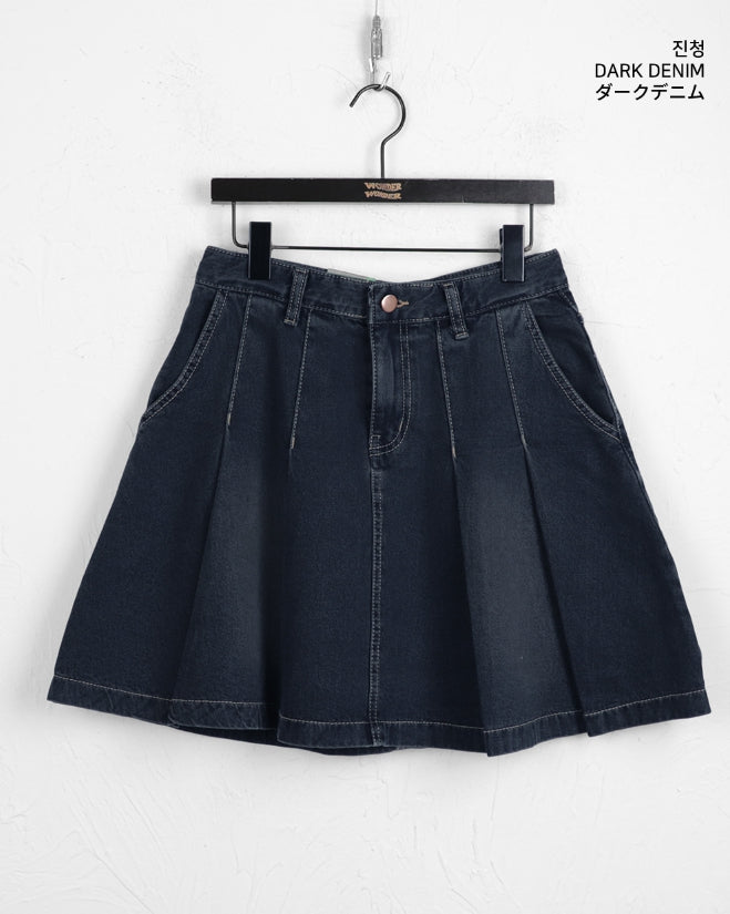 ヘタプリーツテニスデニムミディ丈スカート
