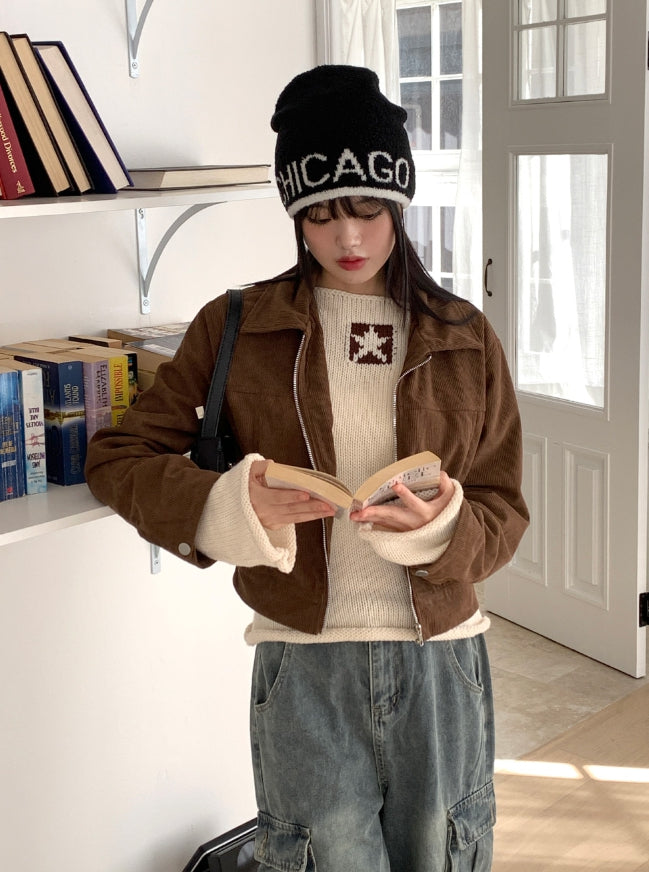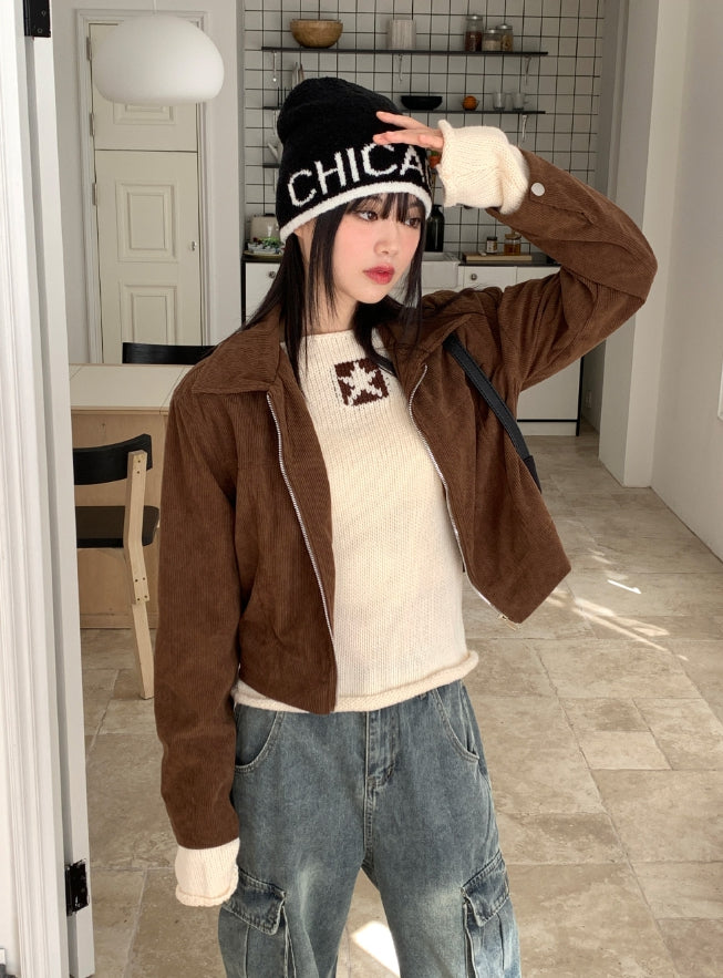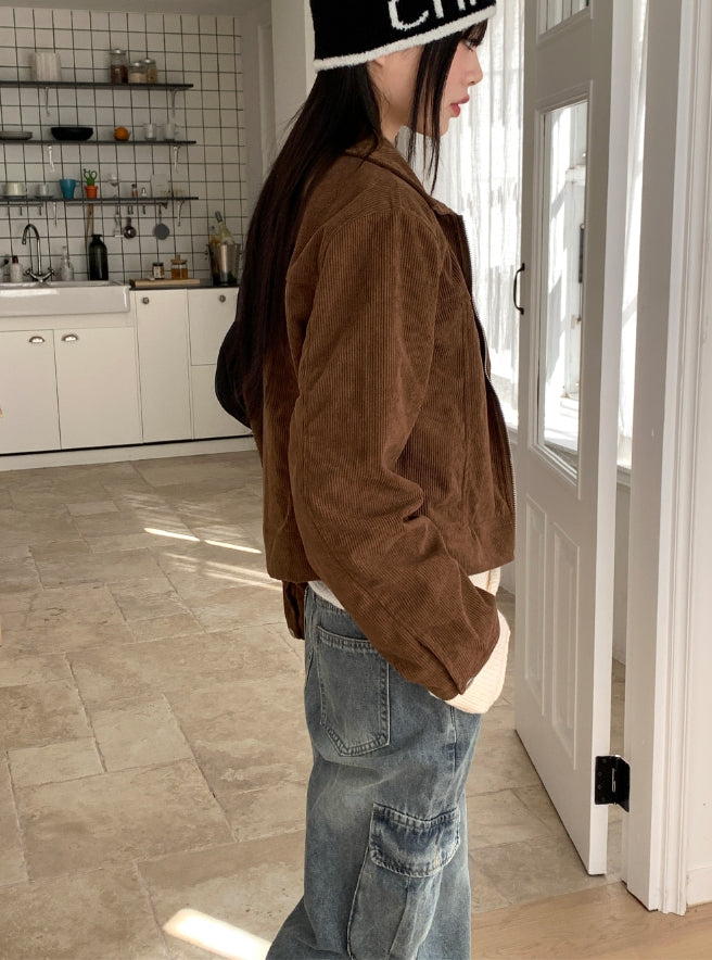 Hilan Corduroy Collar Cropped Blouson Jacket